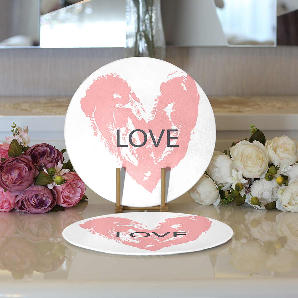 Realhomes Sevgililer Günü Temalı Özel Tasarım Dijital Baskılı Modern 2'li Yuvarlak Servis Altlığı - Supla Realhomes