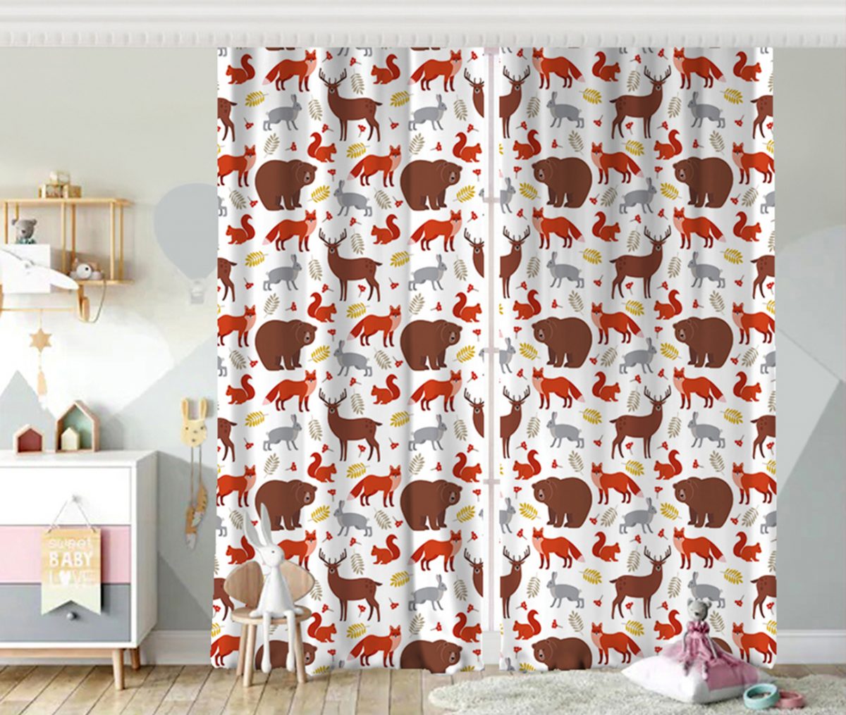Realhomes Sevimli Hayvanlar Desenli Dijital Baskılı Modern Çocuk Odası Fon Perde