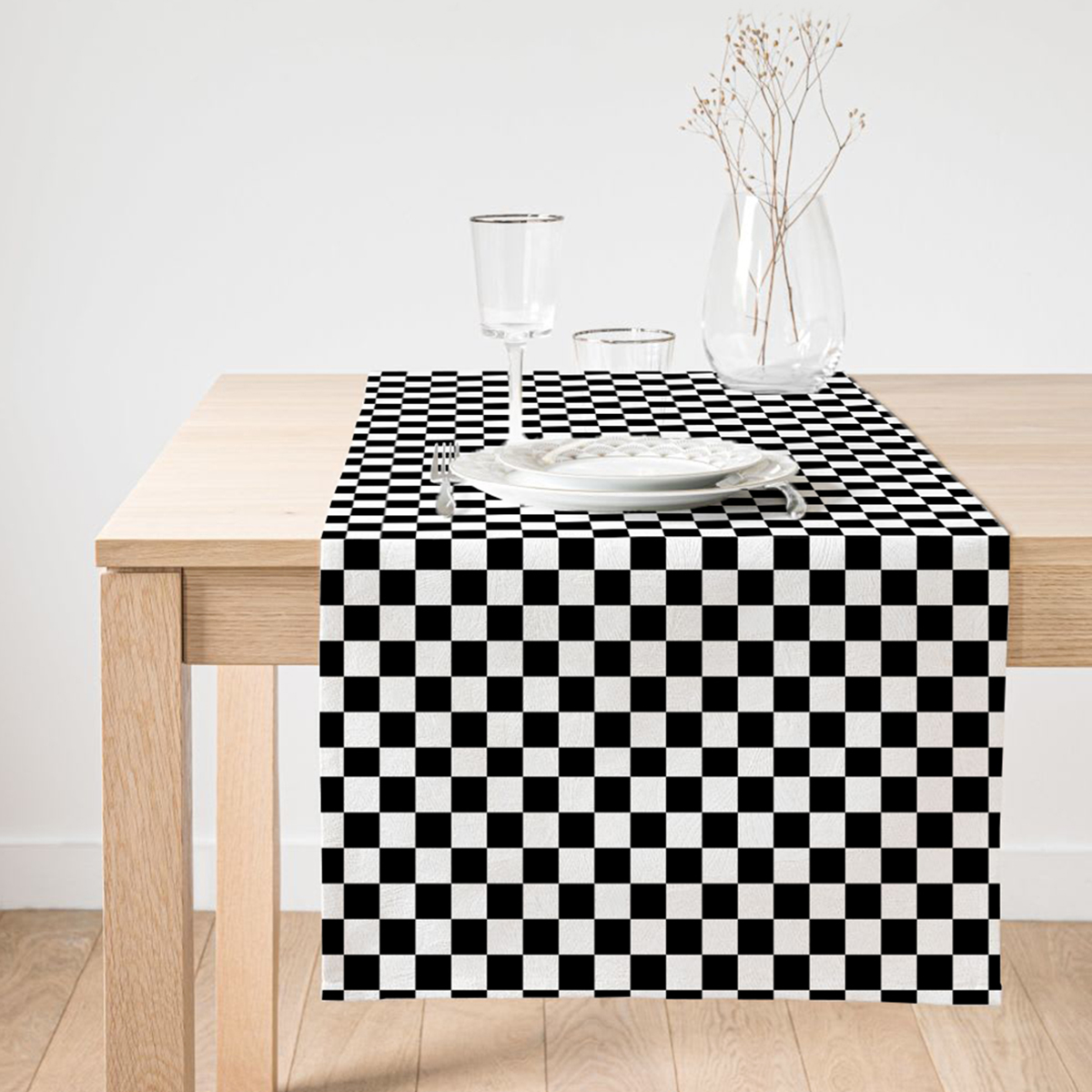 Realhomes Siyah Beyaz Ekose Desenli Dekoratif Özel Tasarım Süet Runner
