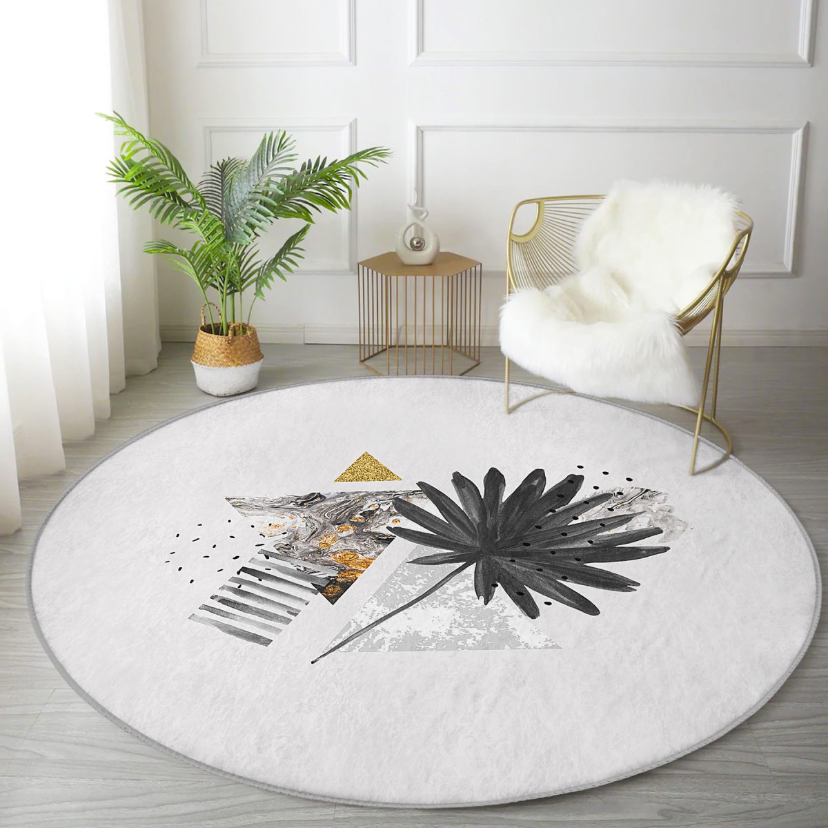 Realhomes Siyah Çiçek Üçgen Tasarımlı Dijital Baskılı Gri Banyo Yıkanabilir Kaymaz Tabanlı Yuvarlak Halı