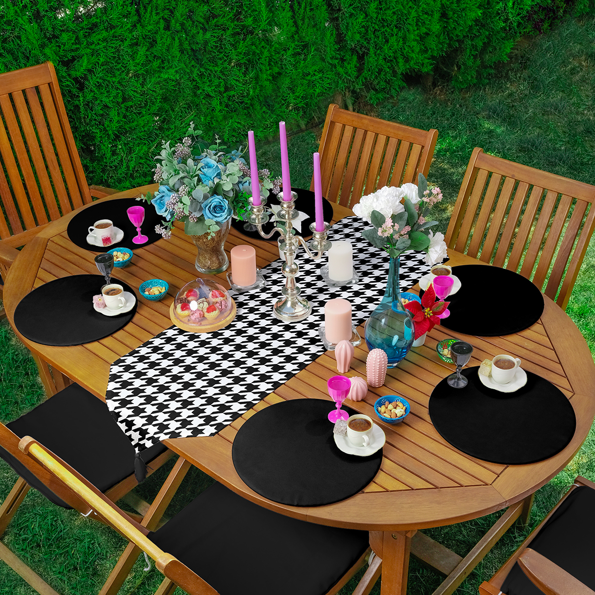 Realhomes Siyah Kazayağı Desenli Üçgen Püsküllü Runner 1 Adet & 6 Adet Siyah Renkli Supla Realhomes