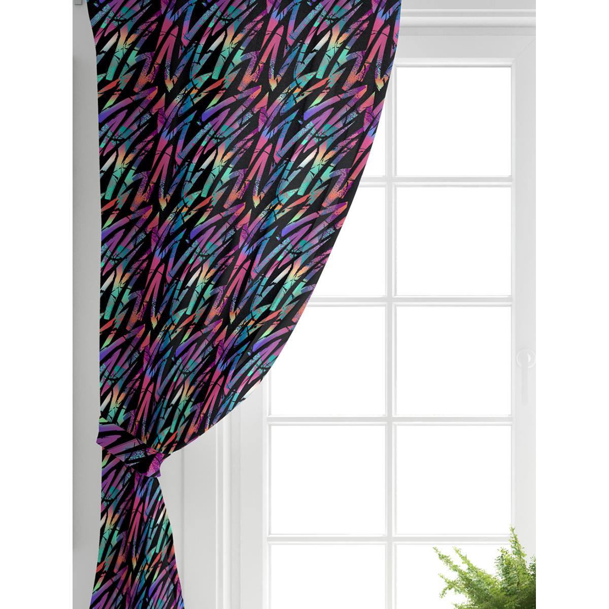 Realhomes Siyah Zemin Üzerinde Neon Zikzak Desenli Modern Salon Fon Perde