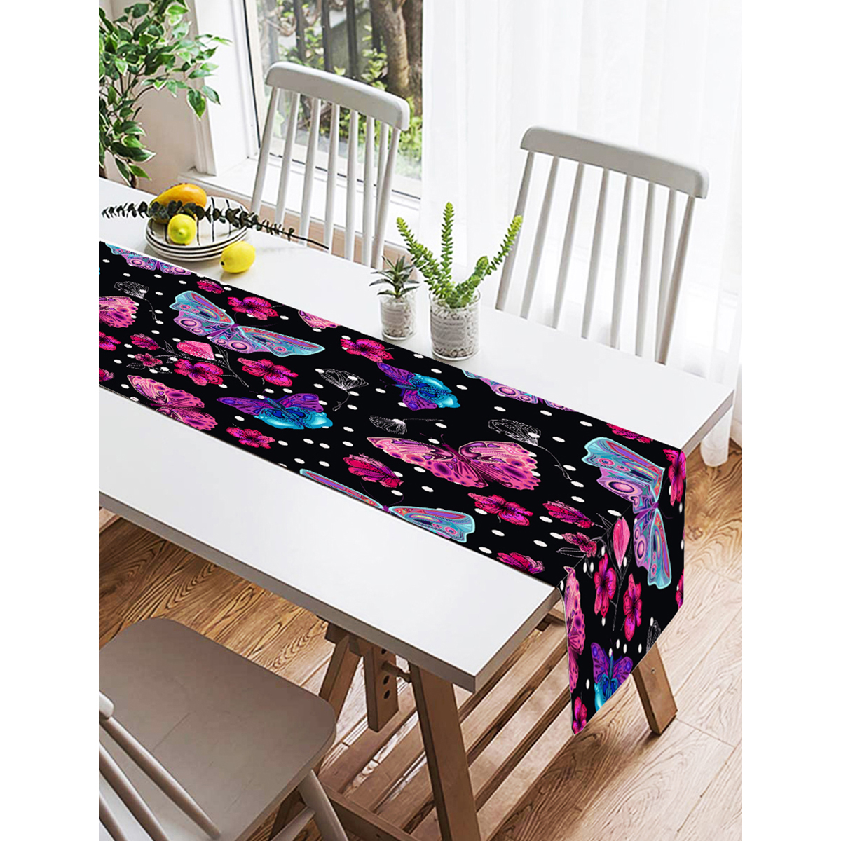 Realhomes Siyah Zeminde Butterfly Dijital Baskılı Modern Süet Runner Realhomes