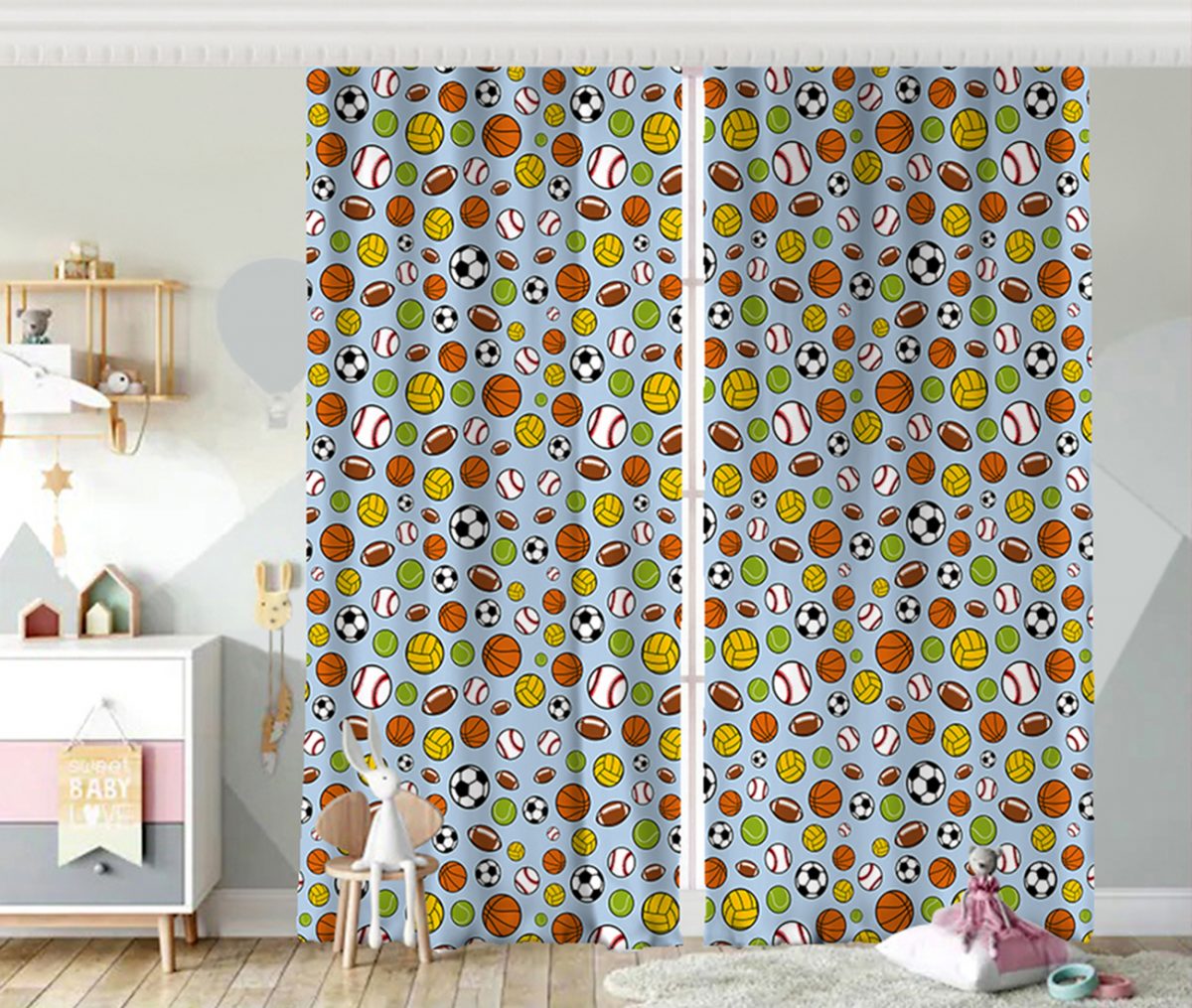 Realhomes Spor Topları Dijital Baskılı Modern Çocuk Odası Fon Perde