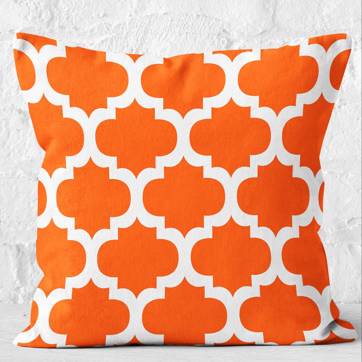 RealHomes Turuncu Zeminde Ogea Motifli Morrocan Desenli Dijital Baskılı Yastık Kırlent Kılıfı
