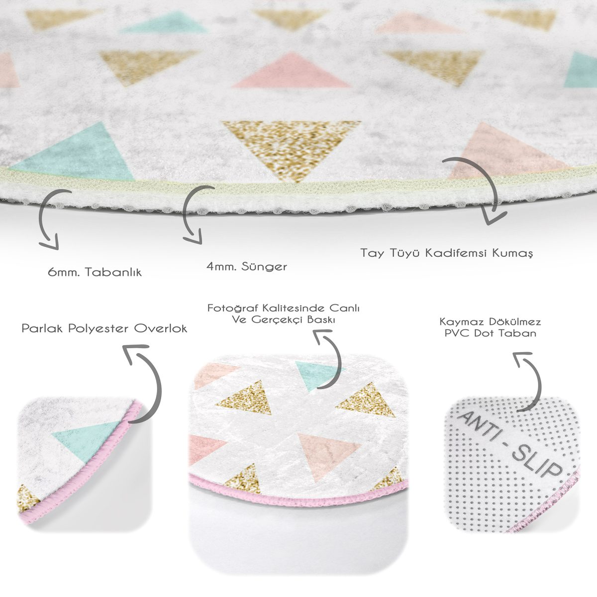 Realhomes Üçgen Geometrik Şekiller Özel Tasarımlı Modern Pembe Mutfak Yıkanabilir Kaymaz Tabanlı Yuvarlak Halı