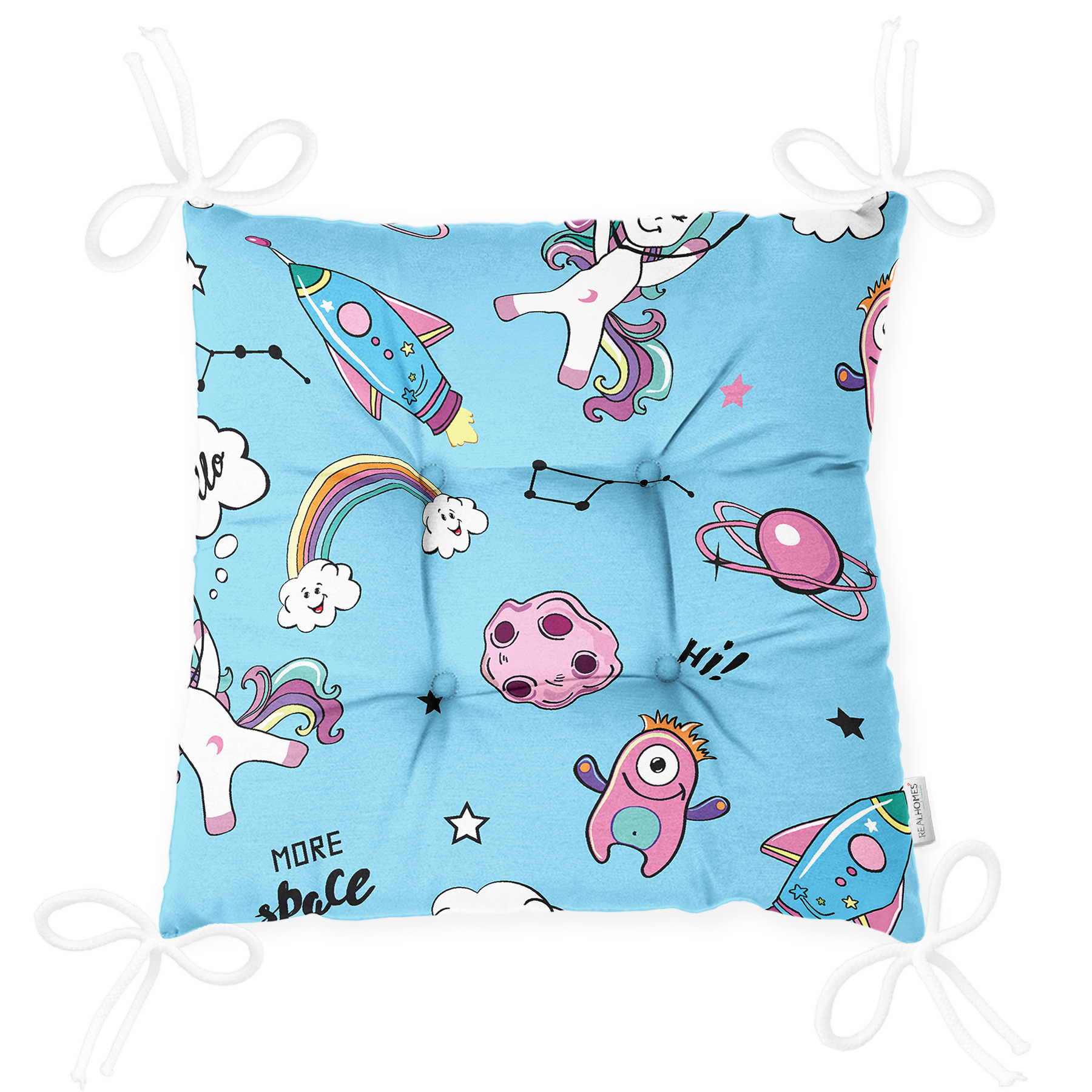 Realhomes Uzay Motifli Özel Tasarım Dijital Baskılı Modern Pofuduk Sandalye Minderi
