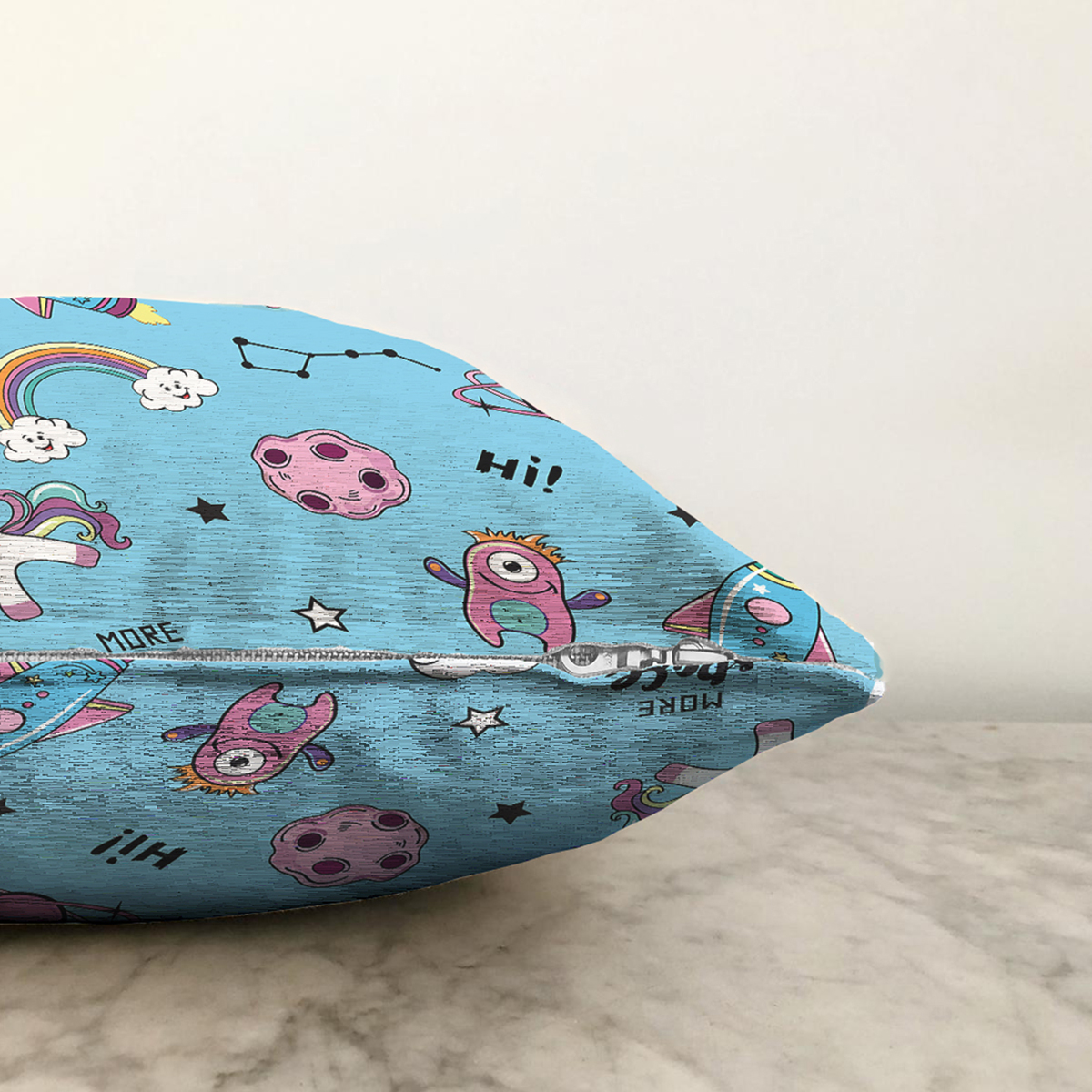 Realhomes Uzay Motifli Özel Tasarım Dijital Baskılı Modern Raşel Kadife Yastık Kırlent Kılıfı