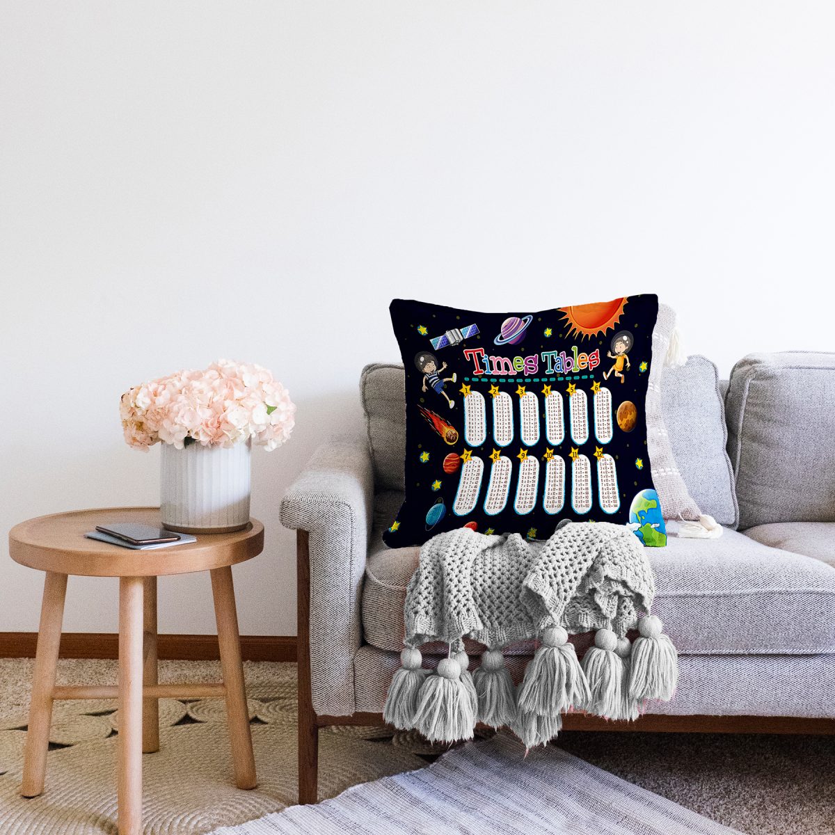 Realhomes Uzay Tasarımlı Eğitici Çarpım Tablosu Motifli Çocuk & Genç Odası Modern Yastık Kırlent Kılıfı
