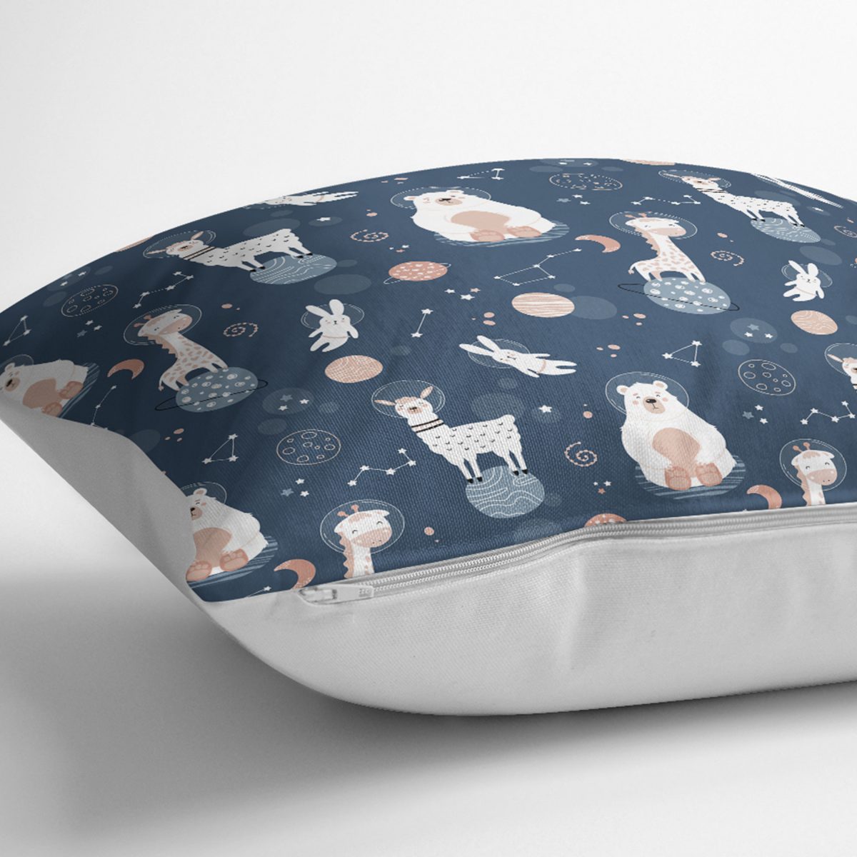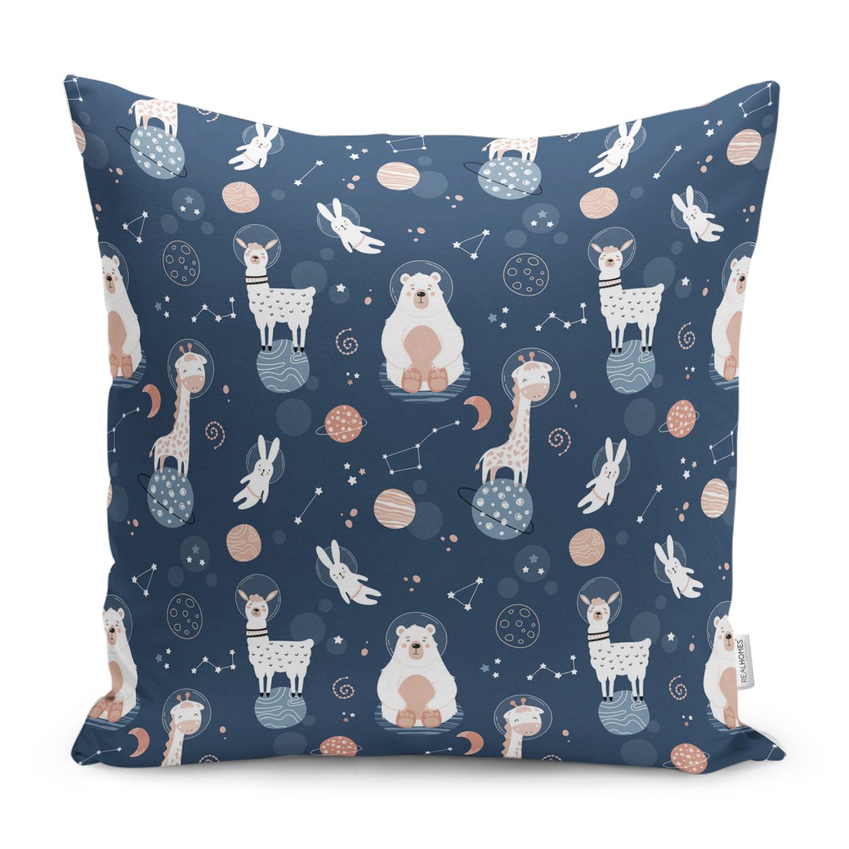 Realhomes Uzaydaki Hayvanlar Desenli Çocuk & Genç Odası Modern Yastık Kırlent Kılıfı