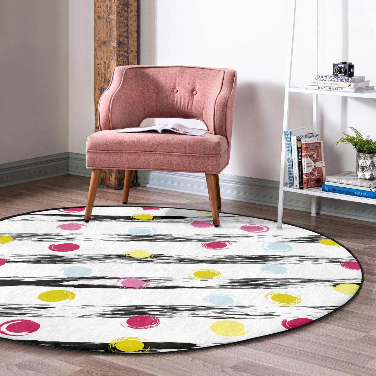 Realhomes Yatay Temalı Gökkuşağı Puanlı Modern Renkli Mutfak Yıkanabilir Kaymaz Tabanlı Yuvarlak Halı