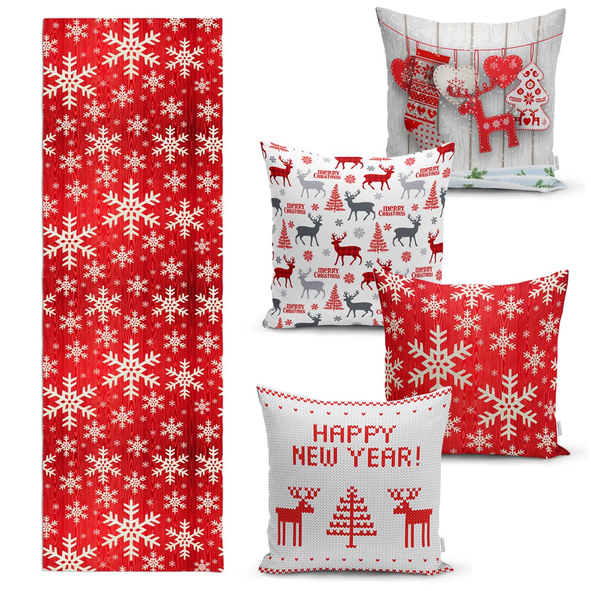 RealHomes Yılbaşı Özel Dijital Baskılı 4'lü Kırlent ve Runner Seti