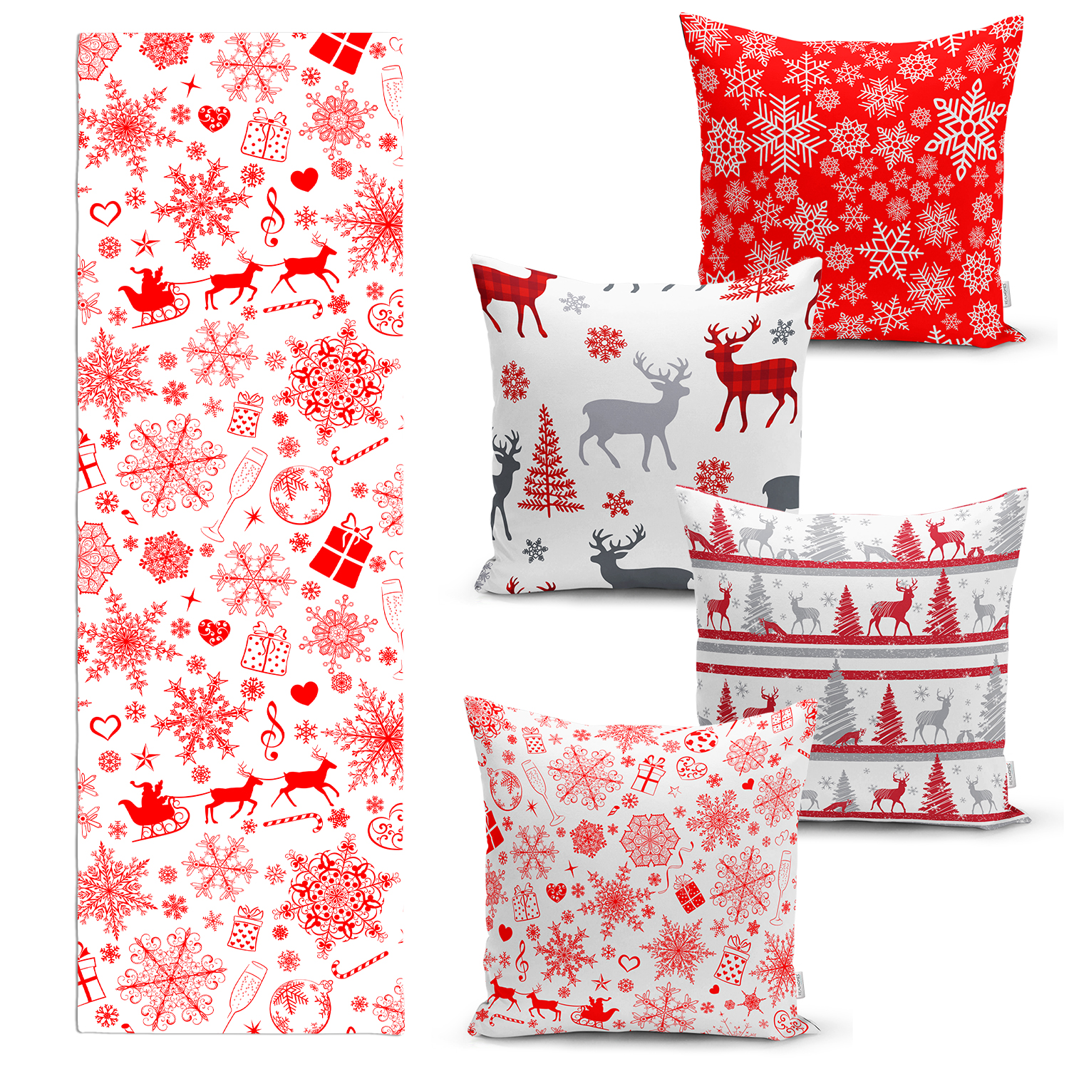 RealHomes Yılbaşı Özel Dijital Baskılı 4'lü Kırlent ve Runner Seti
