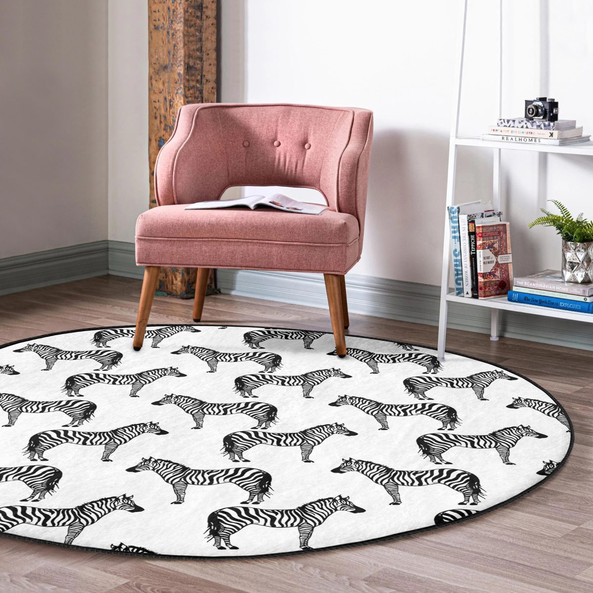 Realhomes Zebra Tasarımlı Dijital Baskılı Siyah Mutfak Yıkanabilir Kaymaz Tabanlı Yuvarlak Kadife Halı