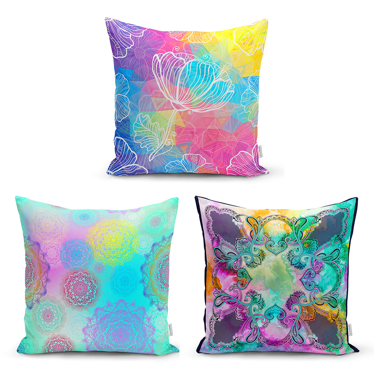 Rengarenk Damask Baskılı 3'Lü Kırlent Kılıf Seti Realhomes
