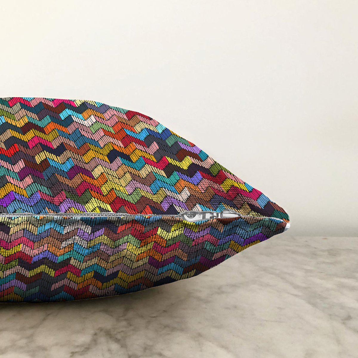 Rengarenk Geometrik Desenli Dijital Baskılı Dekoratif Şönil Yastık Kırlent Kılıfı