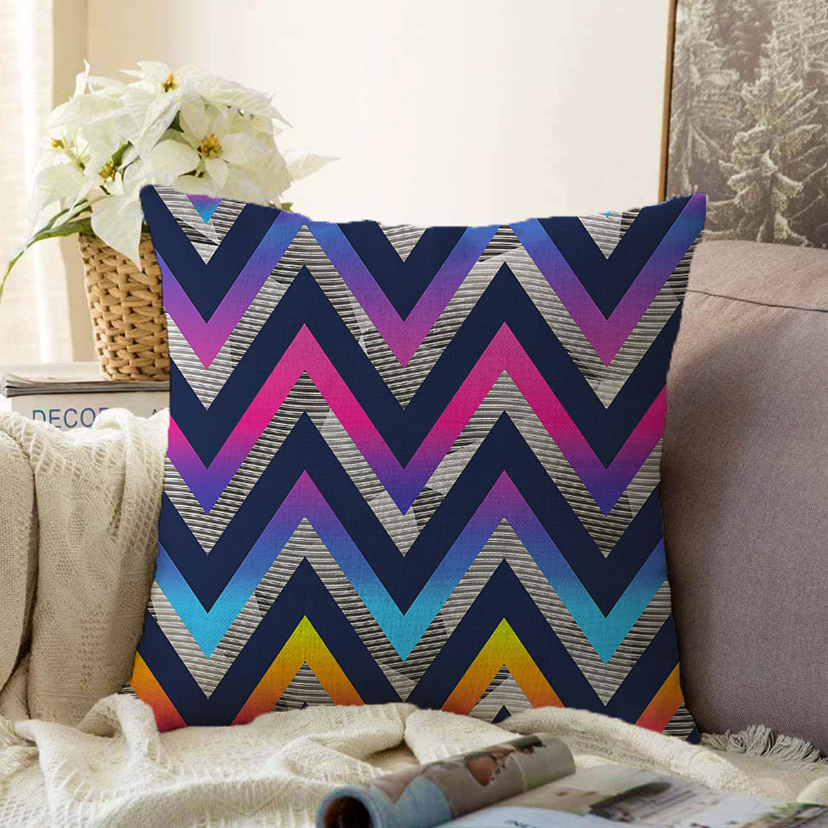 Rengarenk Zikzak Motifli Özel Tasarım Dijital Baskılı Modern Raşel Kadife Yastık Kırlent Kılıfı