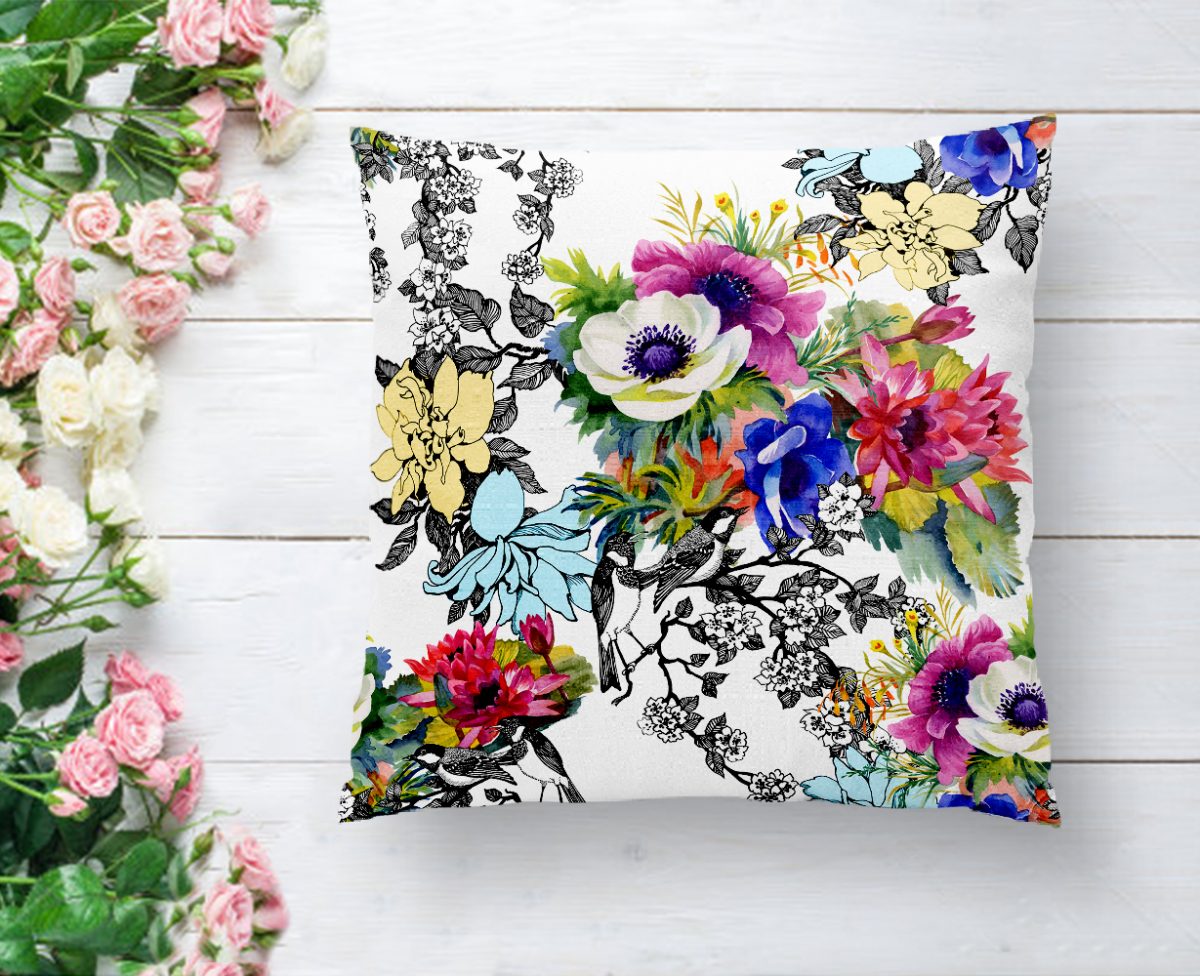Renkli Çiçek Baskılı Dekoratif Yastık Kırlent Kılıfı Realhomes