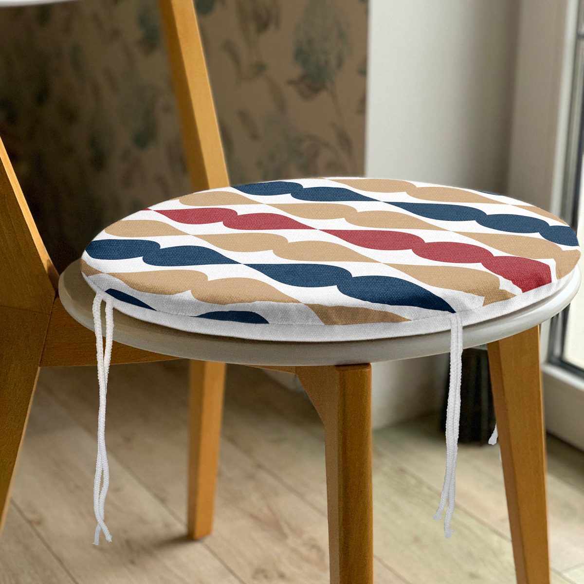 Renkli Damla Tasarımlı Yuvarlak Fermuarlı Sandalye Minderi