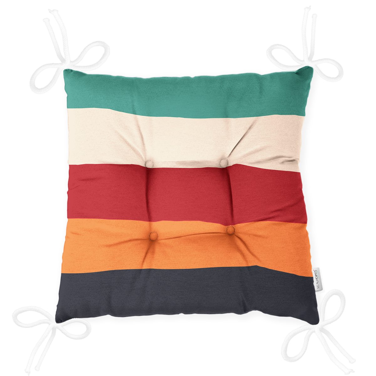Renkli Düz Çizgili Dijital Baskılı Pofuduk Sandalye Minderi Realhomes