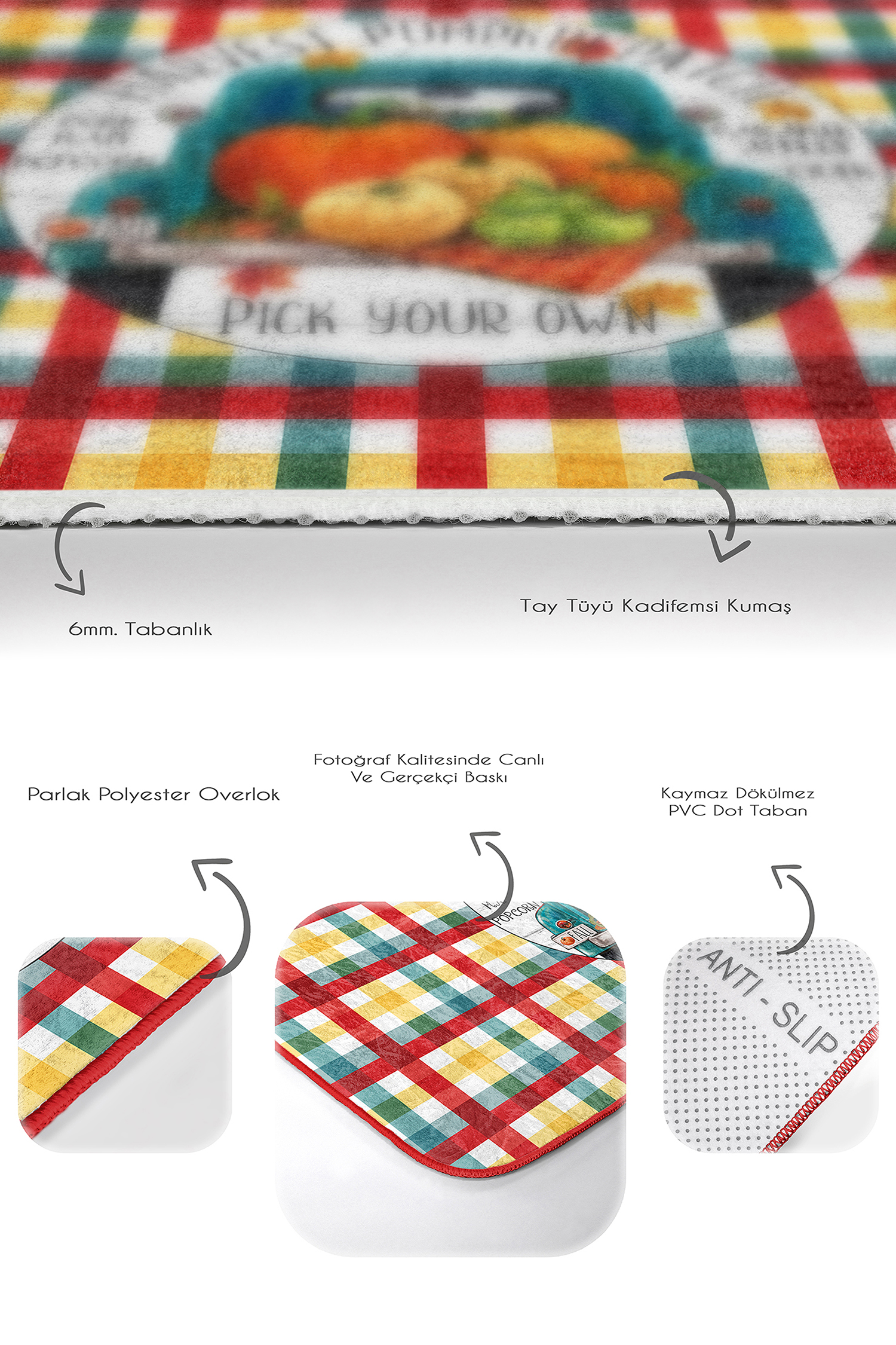 Renkli Ekose Kabak Temalı 2'li Klozet Takımı & Banyo Paspas Seti Realhomes