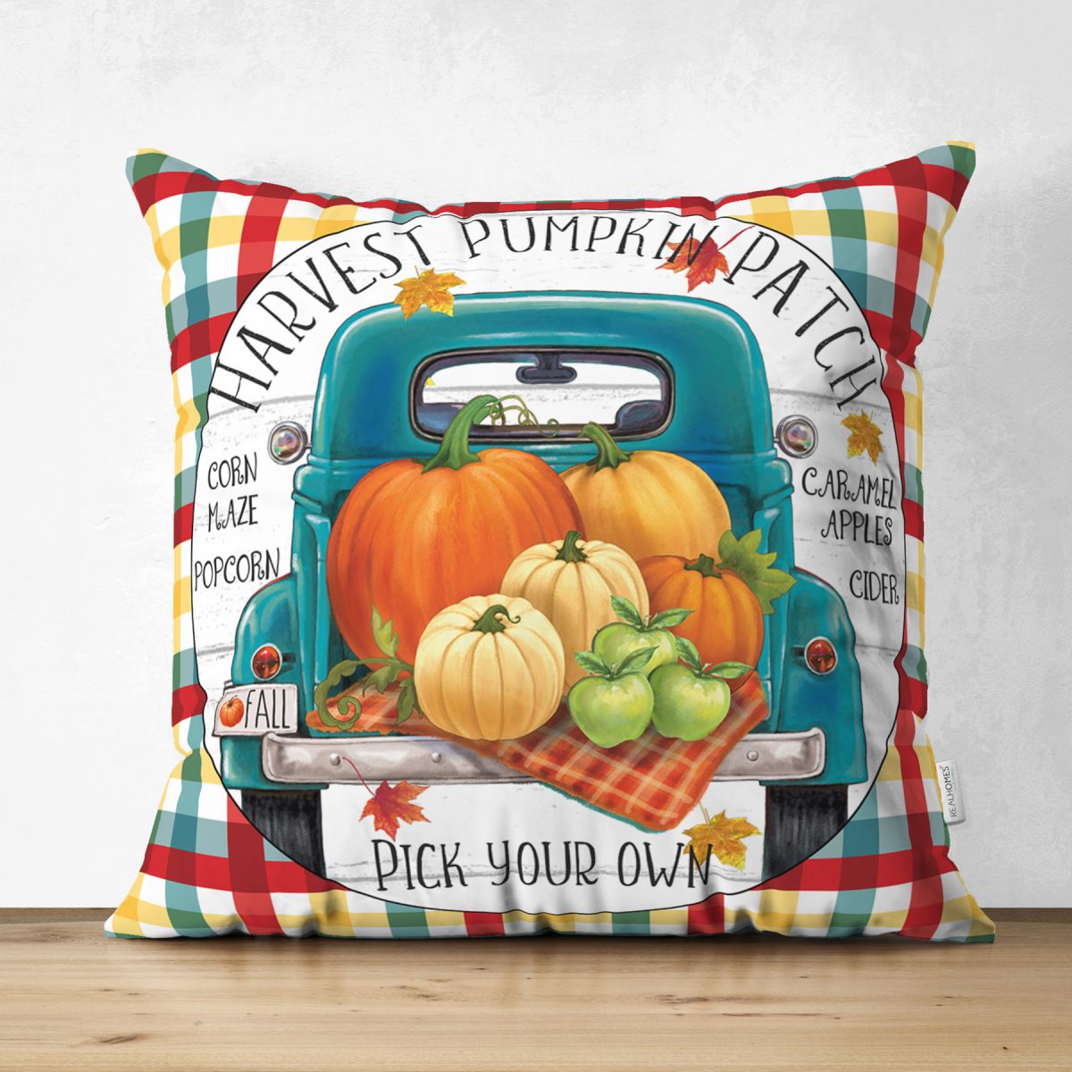 Renkli Ekose Özel Tasarım Kabak Motifli Modern Süet Yastık Kırlent Kılıfı