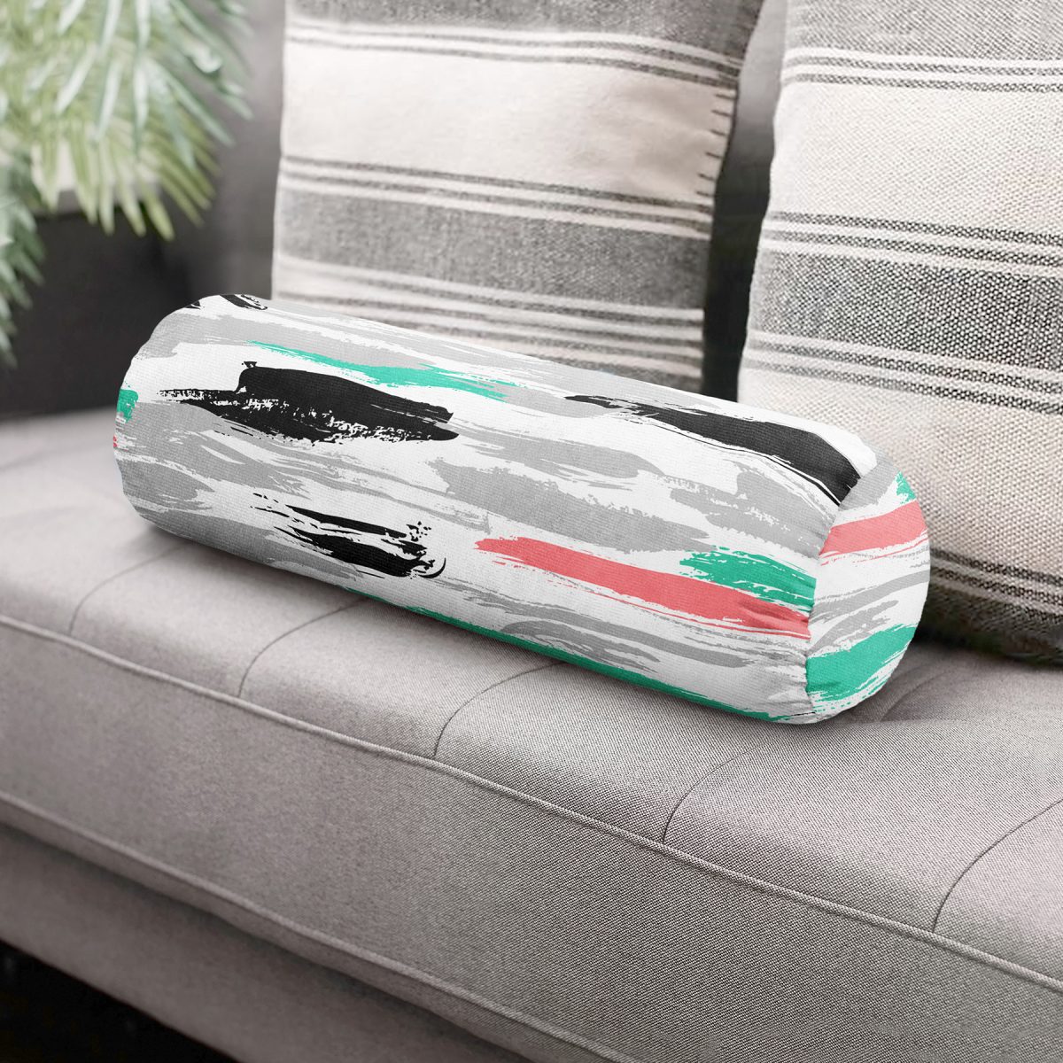 Renkli Fırça Darbeleri Desenli Dekoratif İç Dolgulu – Fermuarlı Süet Berjer Silindir Yastık Kırlent