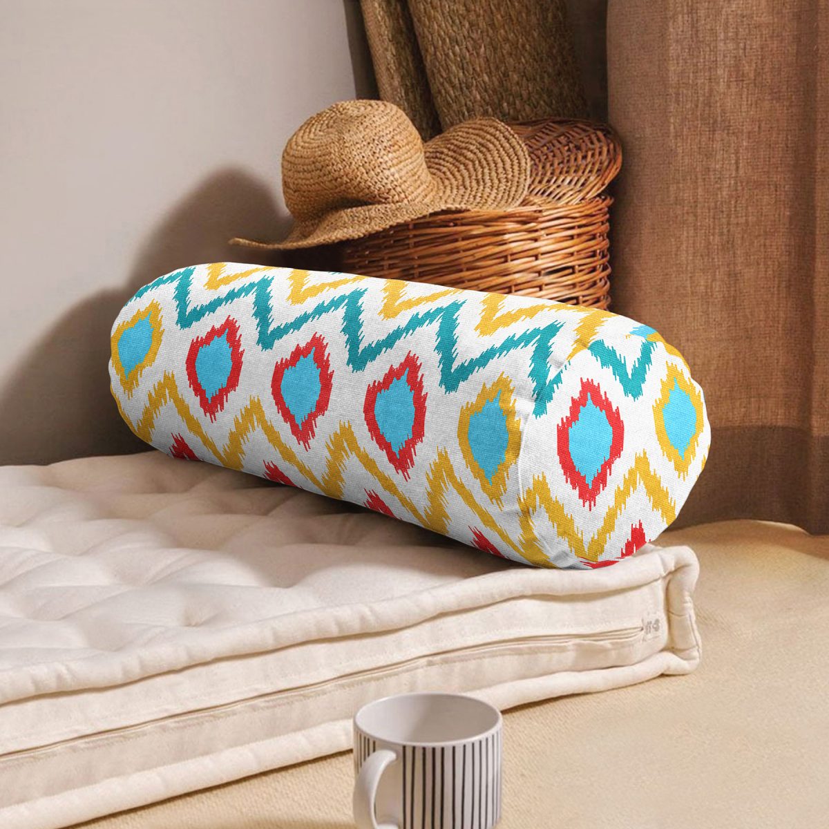 Renkli Geometrik Çizimli Dijital Baskılı İç Dolgulu Fermuarlı Çok Amaçlı Silindir Yastık Kırlent