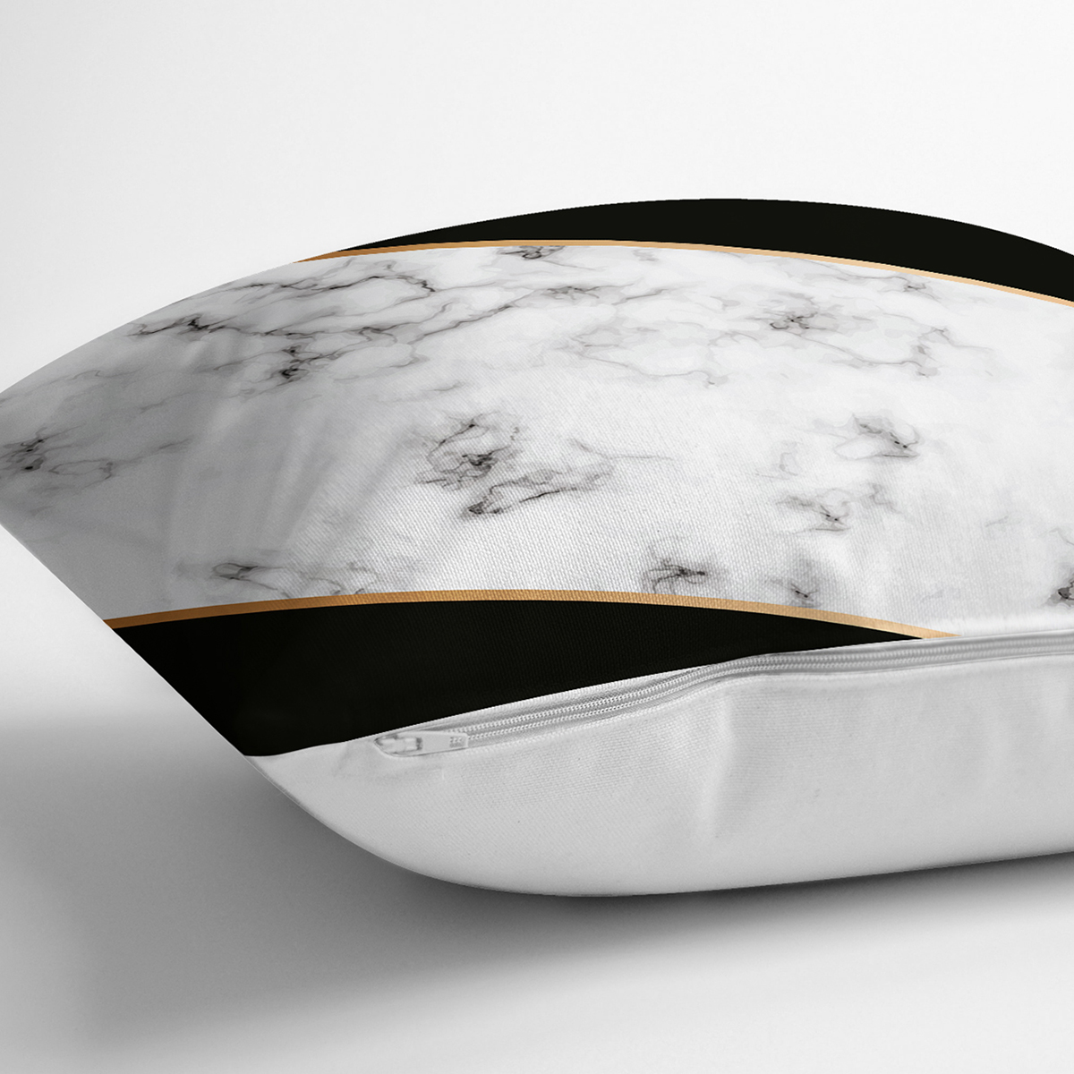 Renkli Geometrik Desenli Mermer Motifli Dijital Baskılı Modern Kırlent Kılıfı