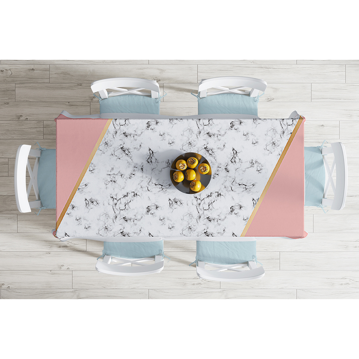 Renkli Geometrik Desenli Mermer Motifli Dijital Baskılı Modern Masa Örtüsü