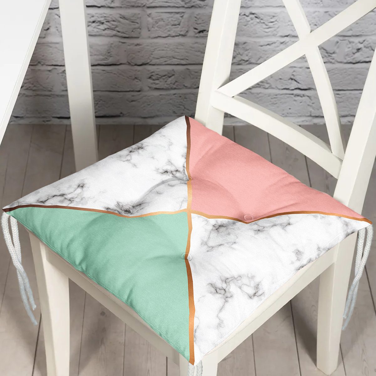 Renkli Geometrik Desenli Mermer Motifli Dijital Baskılı Modern Pofuduk Sandalye Minderi