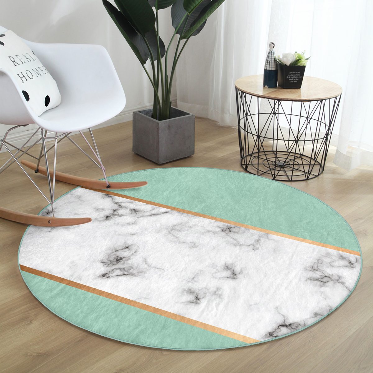 Renkli Geometrik Desenli Mermer Motifli Dijital Baskılı Modern Turkuaz Banyo Yıkanabilir Kaymaz Tabanlı Yuvarlak Halı