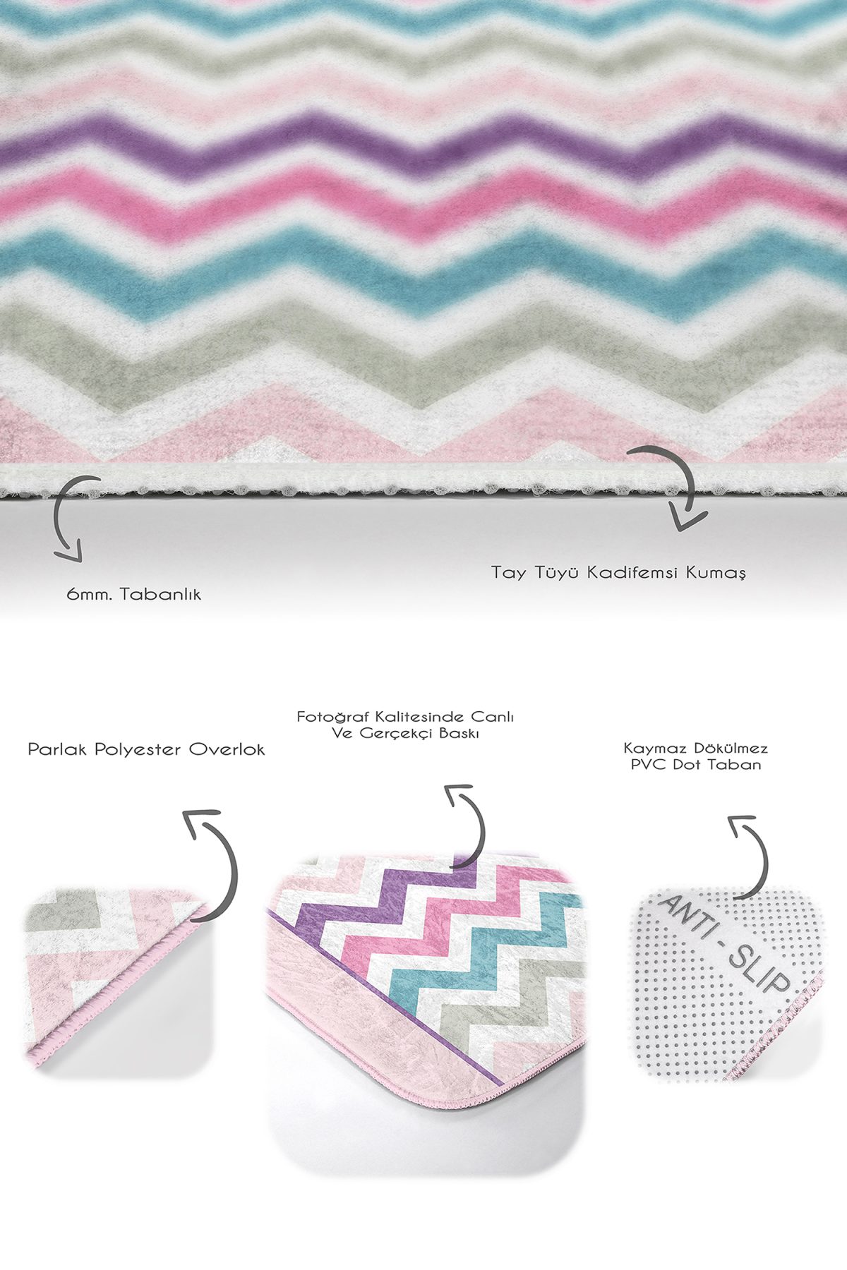 Renkli Geometrik Zigzag Özel Tasarım 2'li Kaymaz Tabanlı Banyo & Mutfak Paspas Takımı Realhomes