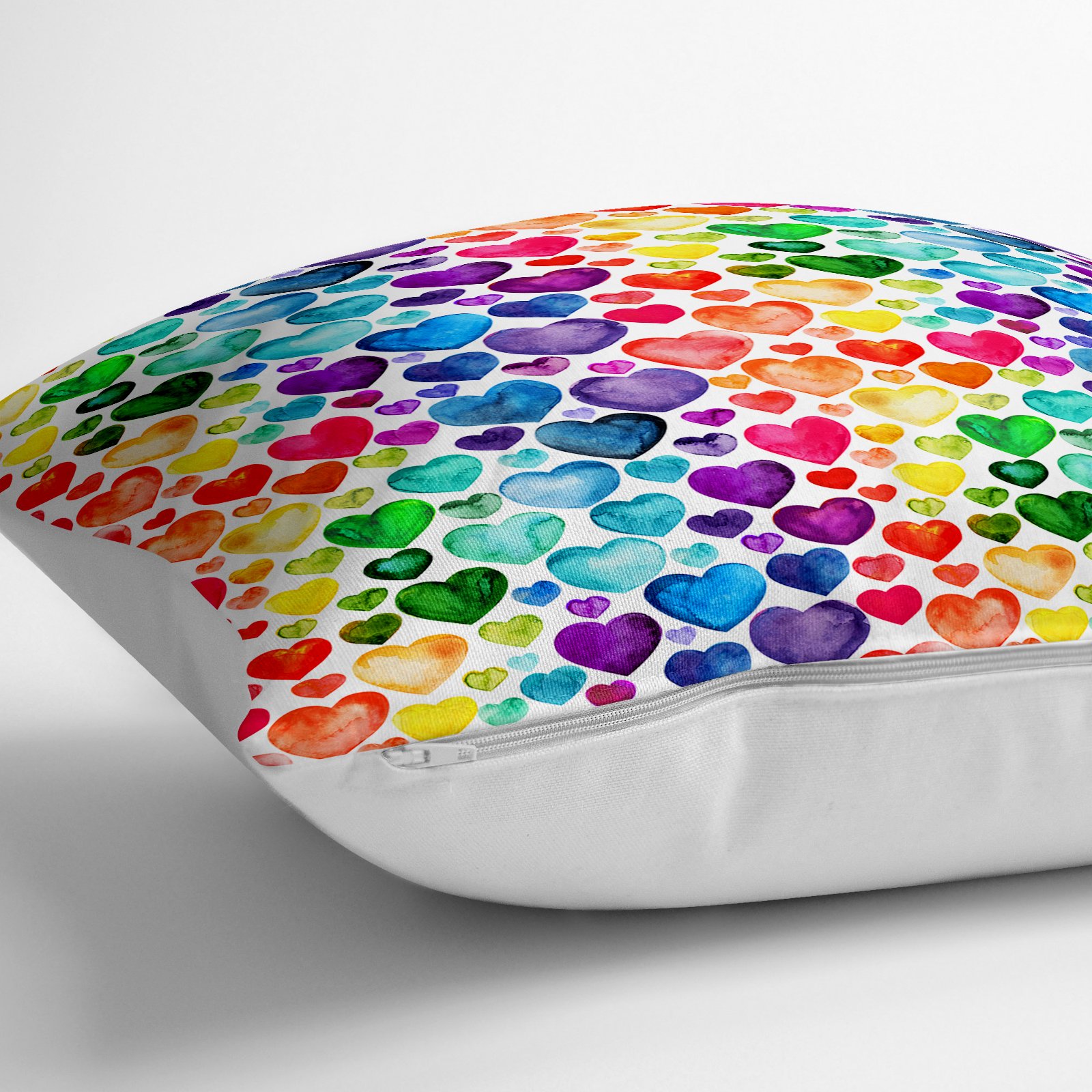 Renkli Kalpler Özel Tasarım Dijital Baskılı Dekoratif Yer Minderi – 70 x 70 cm