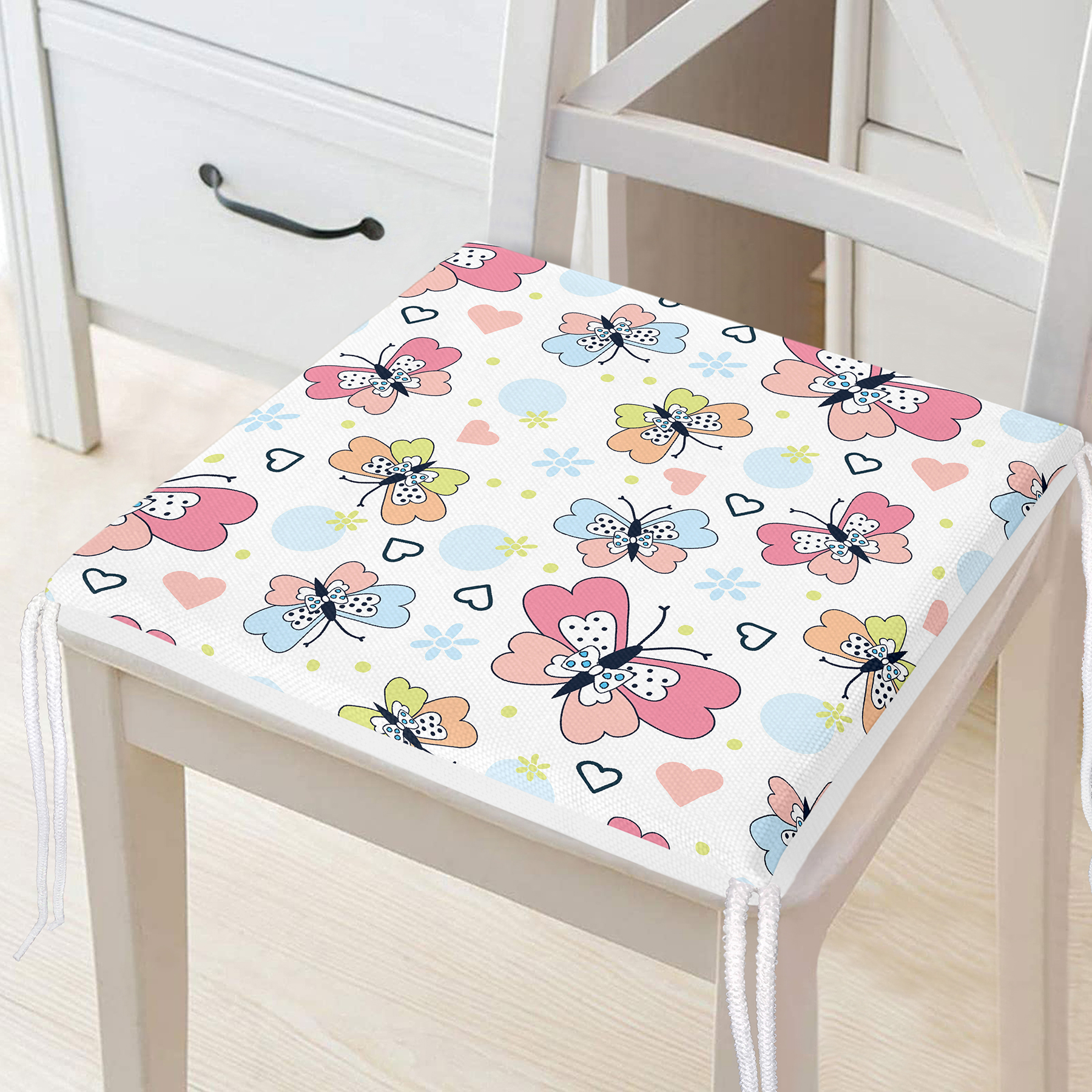 Renkli Kelebekler Özel Tasarım Dijital Baskılı Modern Fermuarlı Sandalye Minderi Realhomes