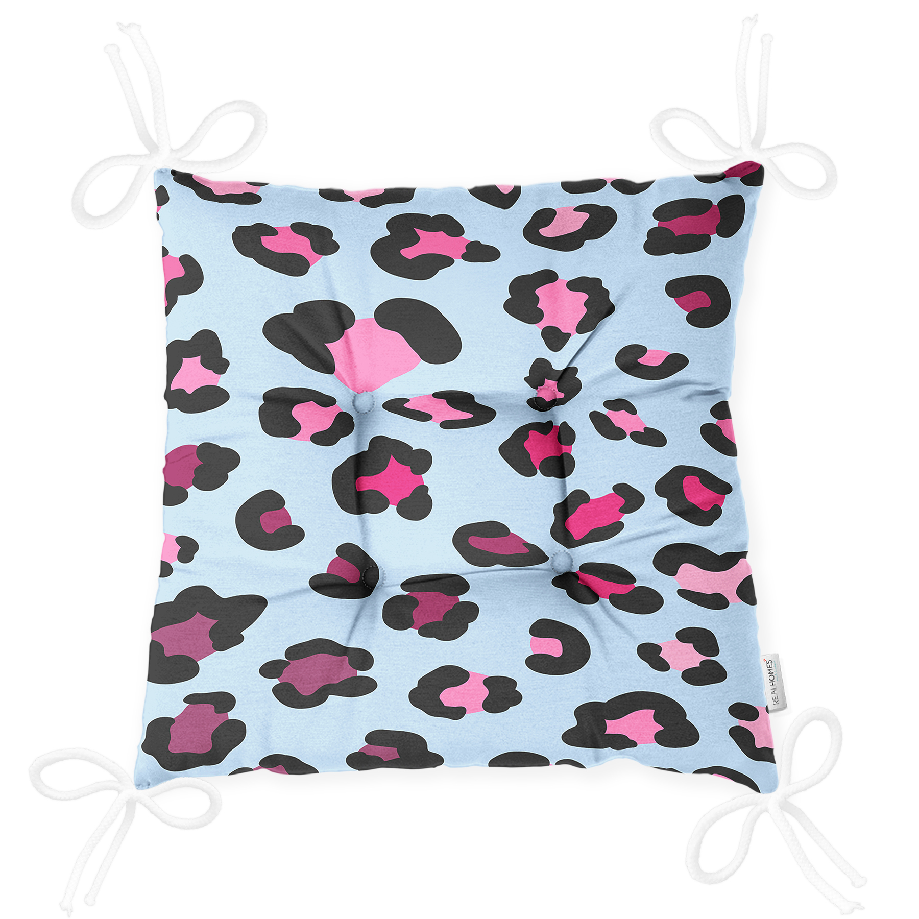 Renkli Leopar Desenli Özel Tasarımlı Dijital Baskılı Çocuk Odası Pofuduk Sandalye Minderi