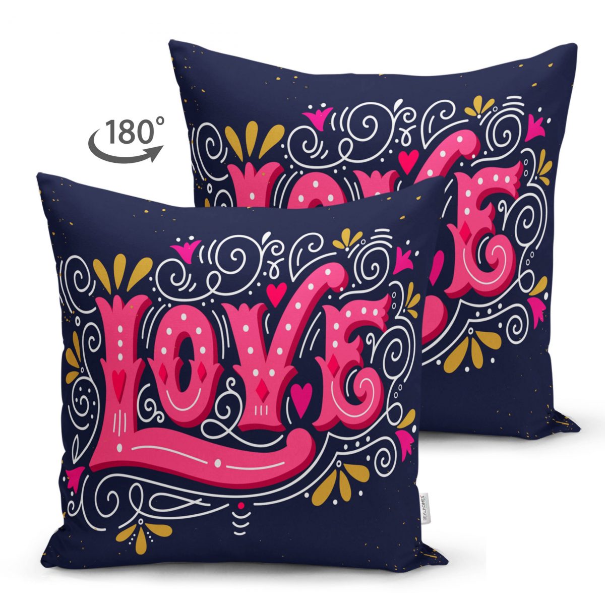 Renkli Love Dijital Baskılı Çift Taraflı Dijital Baskılı Modern Süet Yastık Kırlent Kılıfı Realhomes