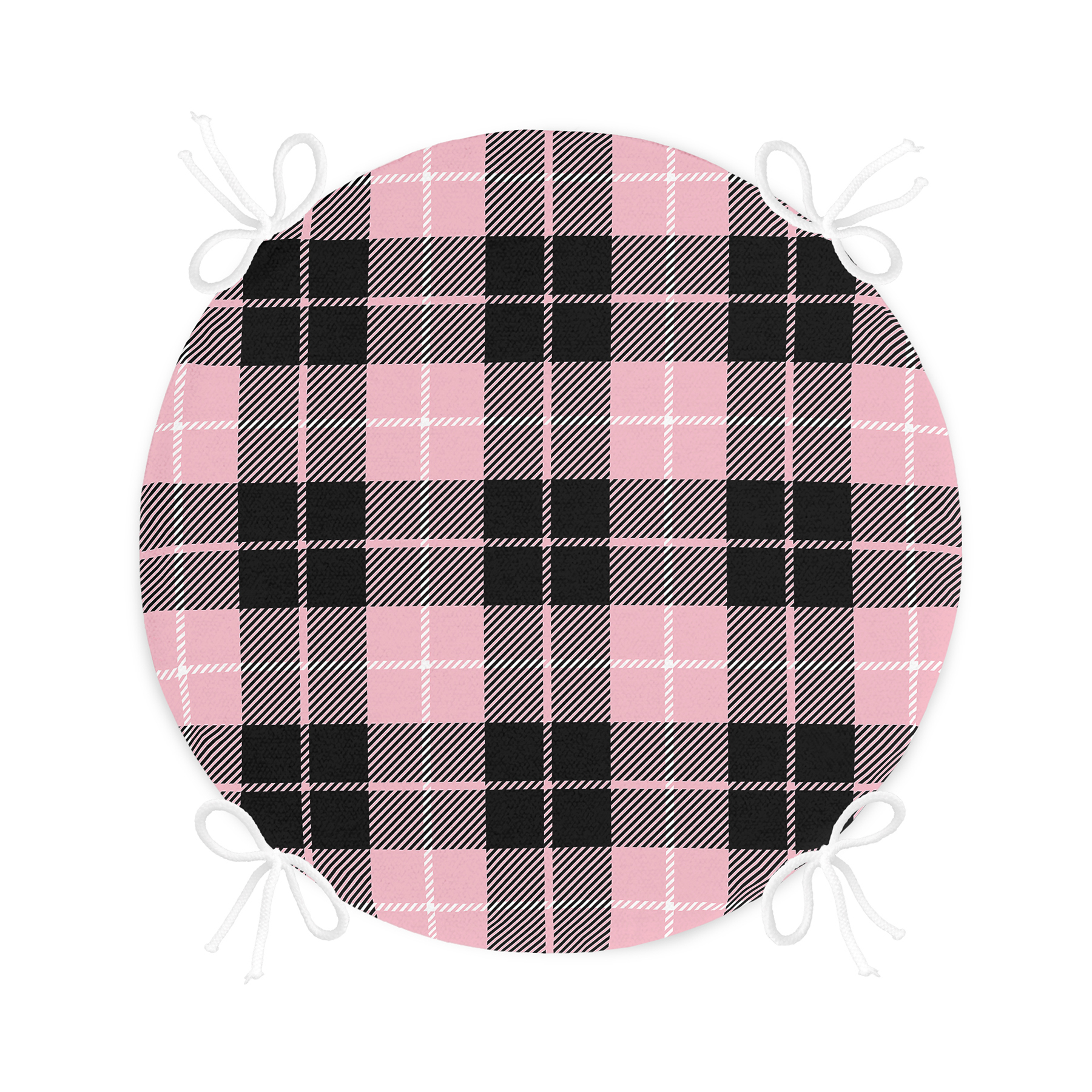Renkli Pastel Zemin Üzerinde Siyah Ekose Desenli Dijital Baskılı Modern Yuvarlak Fermuarlı Sandalye Minderi