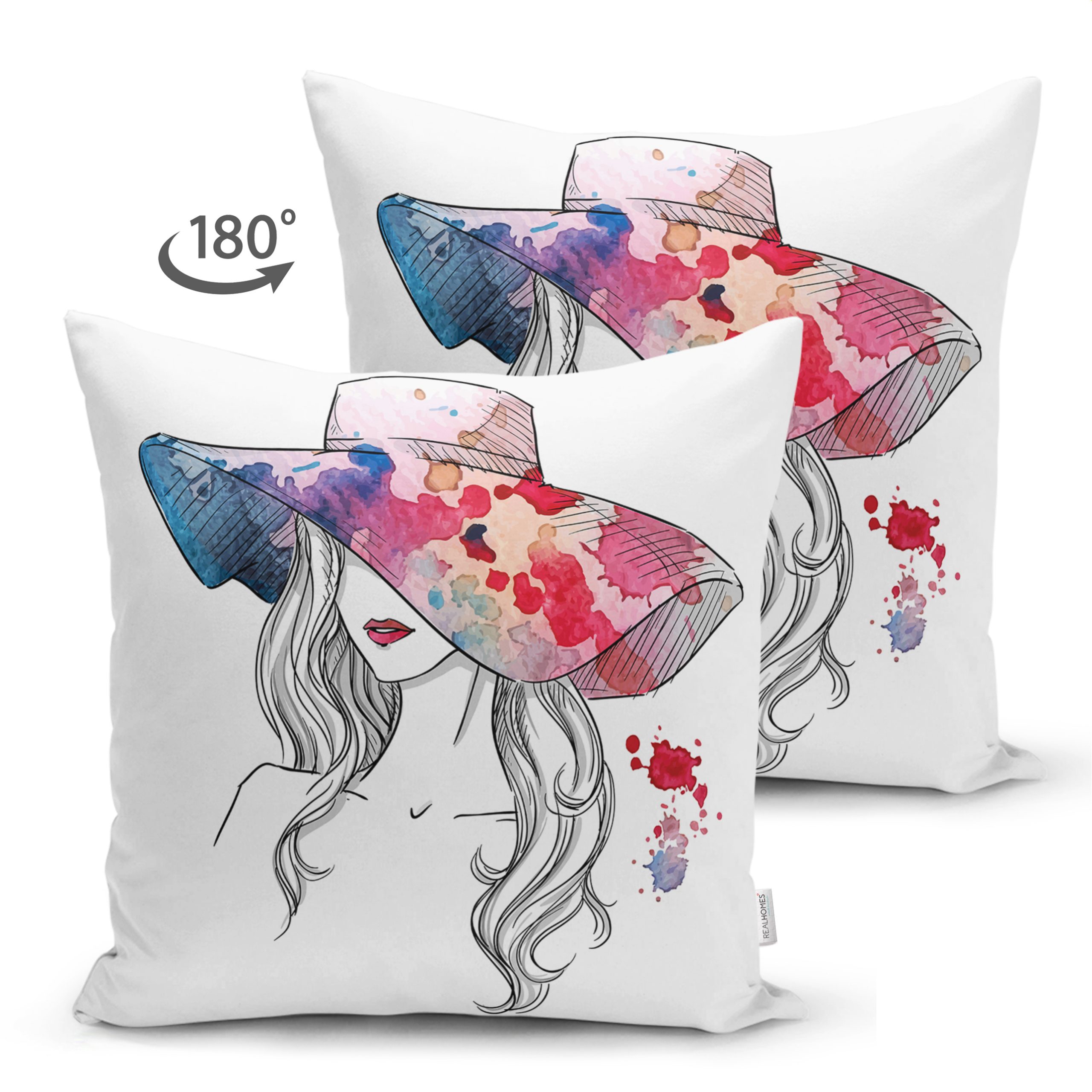 Renkli Şapka Tasarımlı Çift Taraflı Dijital Baskılı Dekoratif Süet Yastık Kırlent Kılıfı Realhomes
