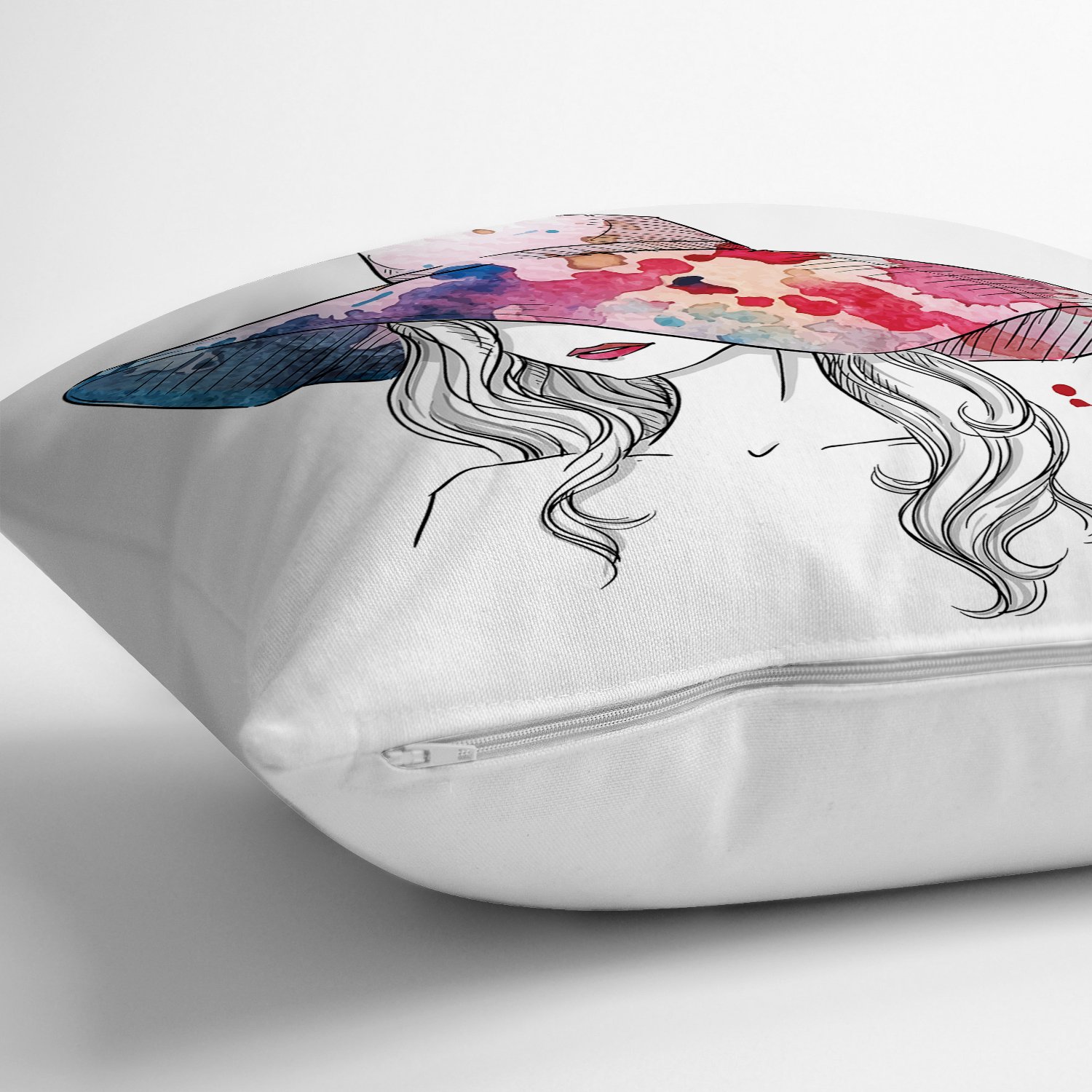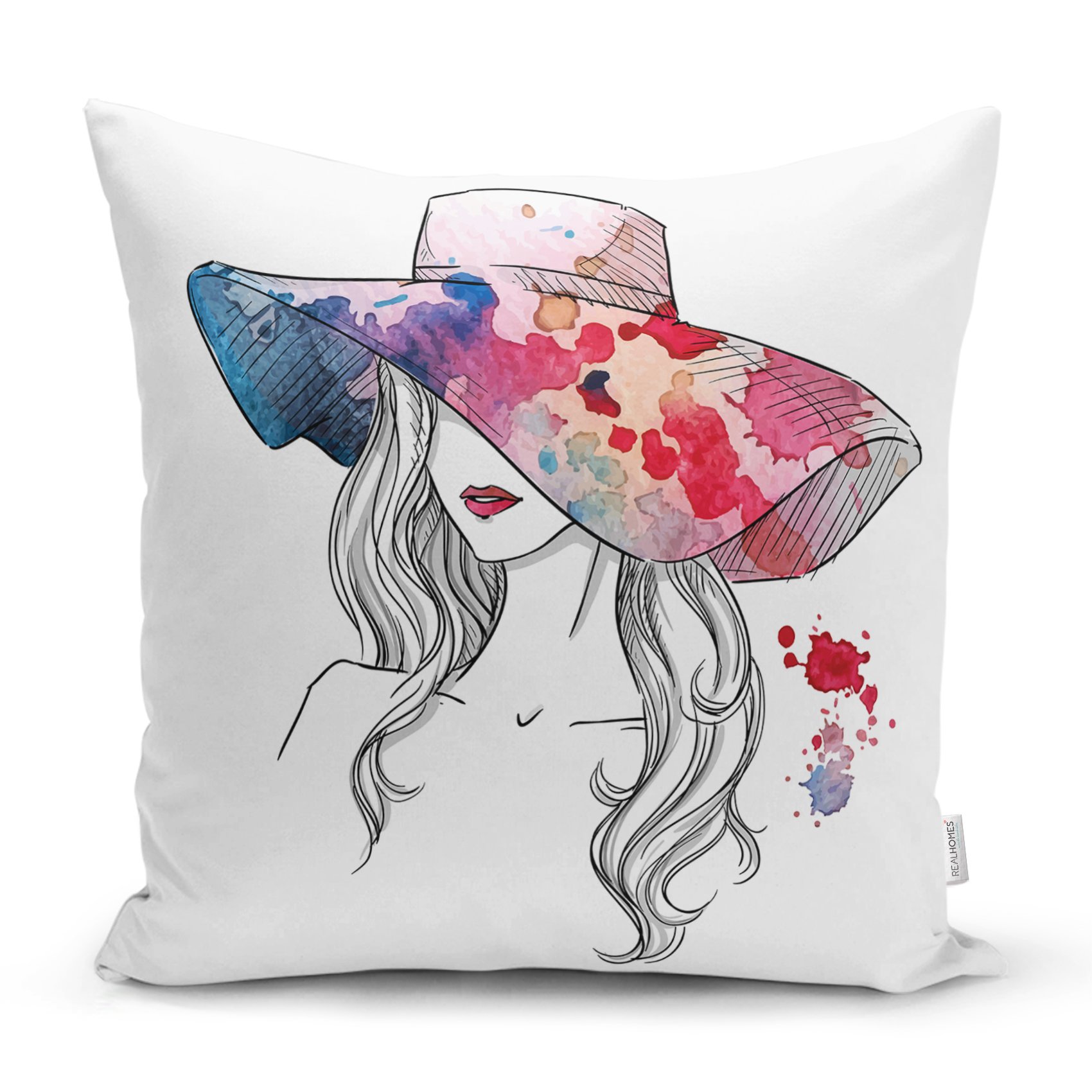 Renkli Şapka Tasarımlı Dijital Baskılı Dekoratif Yastık Kırlent Kılıfı