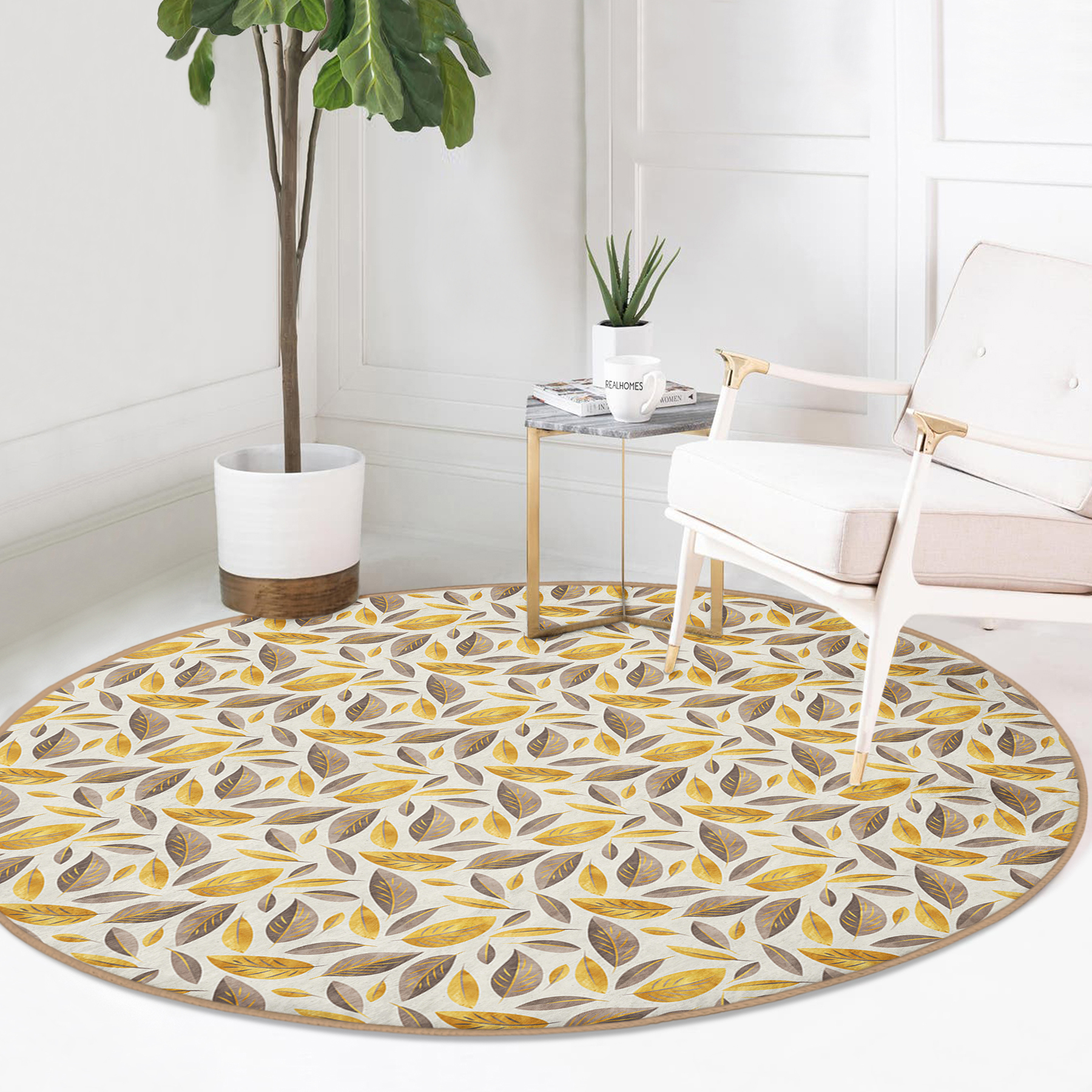 Renkli Sonbahar Yaprakları Özel Tasarımlı Modern Gold Salon ve Oturma Odası Yıkanabilir Kaymaz Tabanlı Yuvarlak Halı