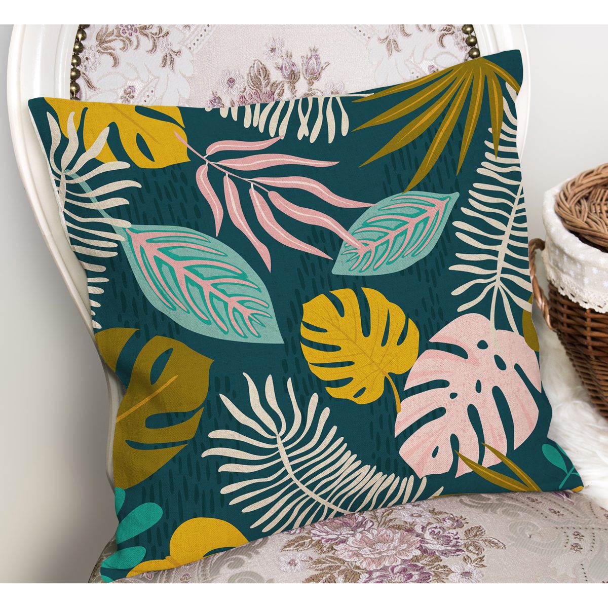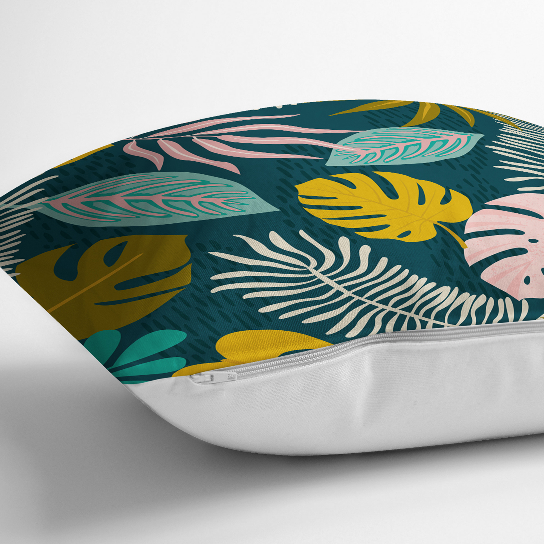 Renkli Tropik Yaprak Temalı Dijital Baskılı Yastık Kırlent Kılıfı Realhomes