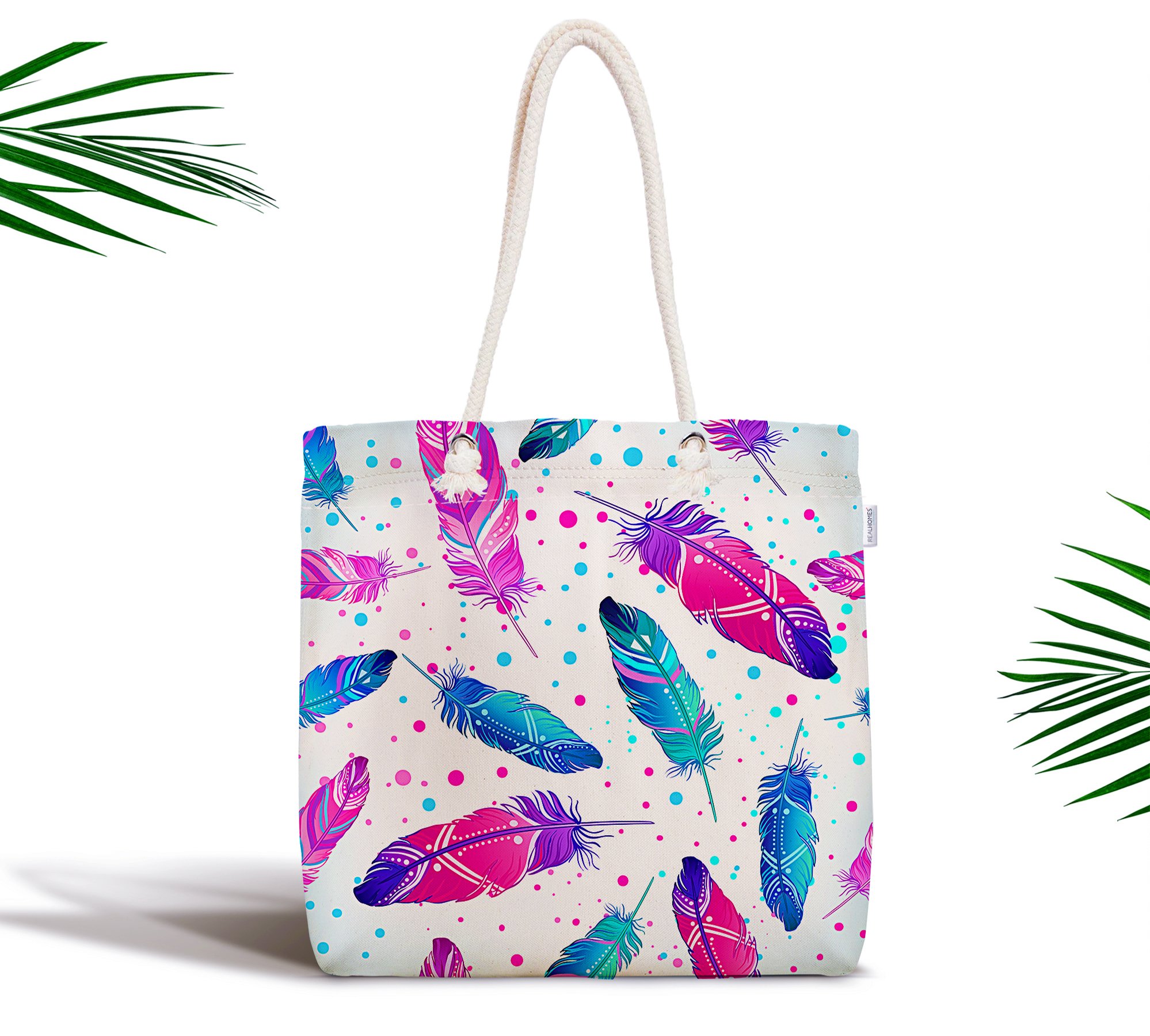 Renkli Tüyler Özel Tasarımlı Dijital Baskılı Fermuarlı Kumaş Çanta