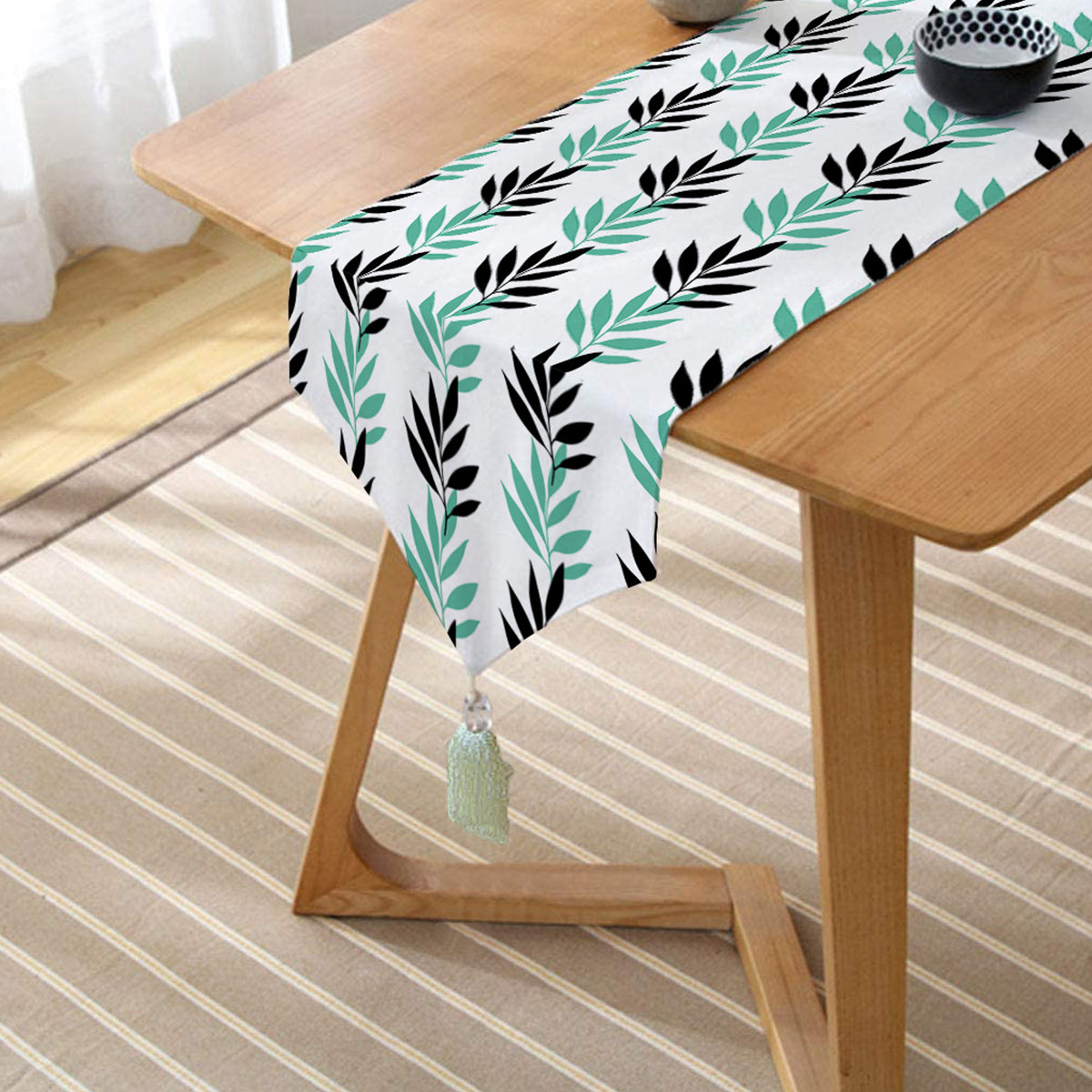 Renkli Yaprak Motifli Dijital Baskılı Modern Püsküllü Şönil Üçgen Runner
