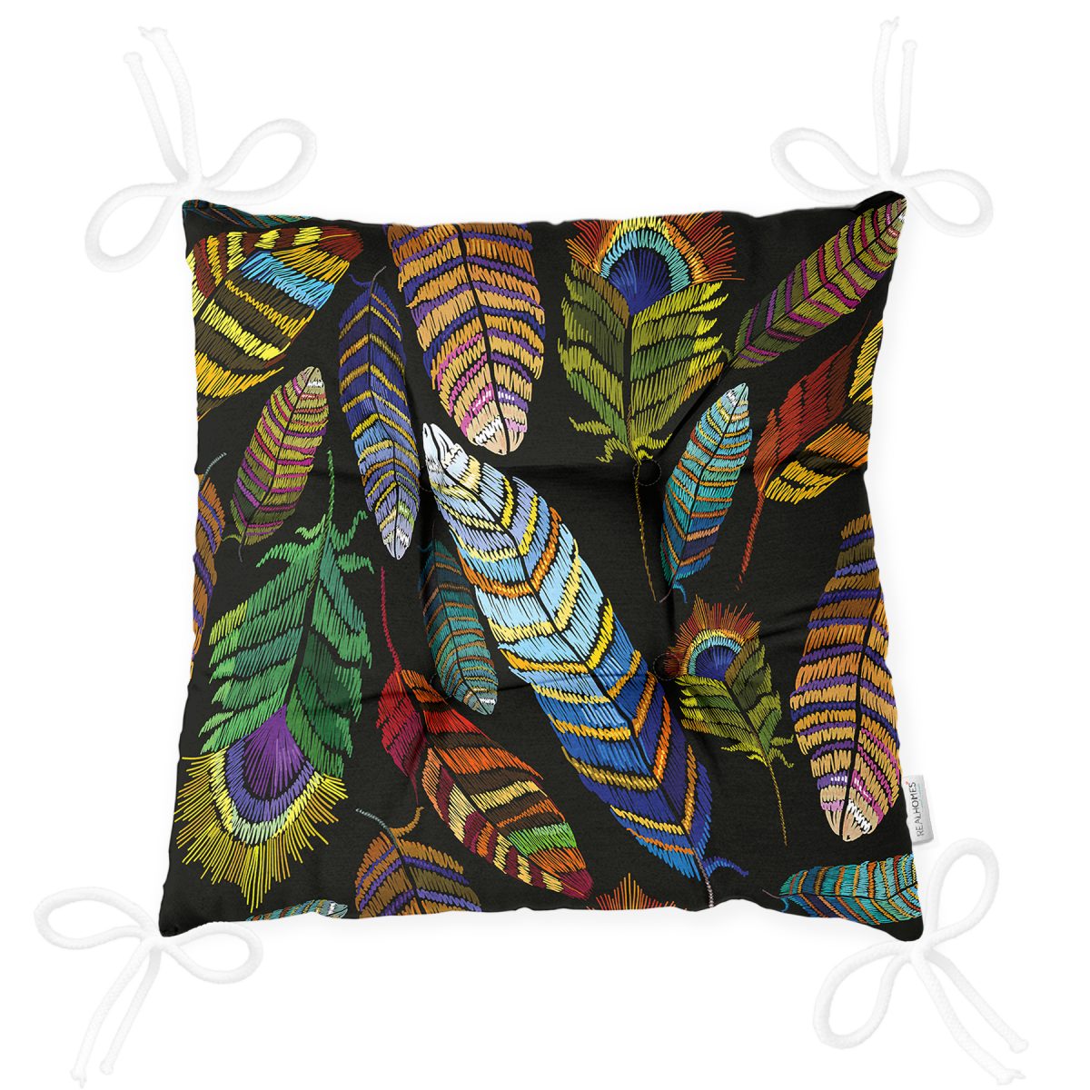 RealHomes Dijital Baskılı Pofuduk Düğmeli Sandalye Minderi