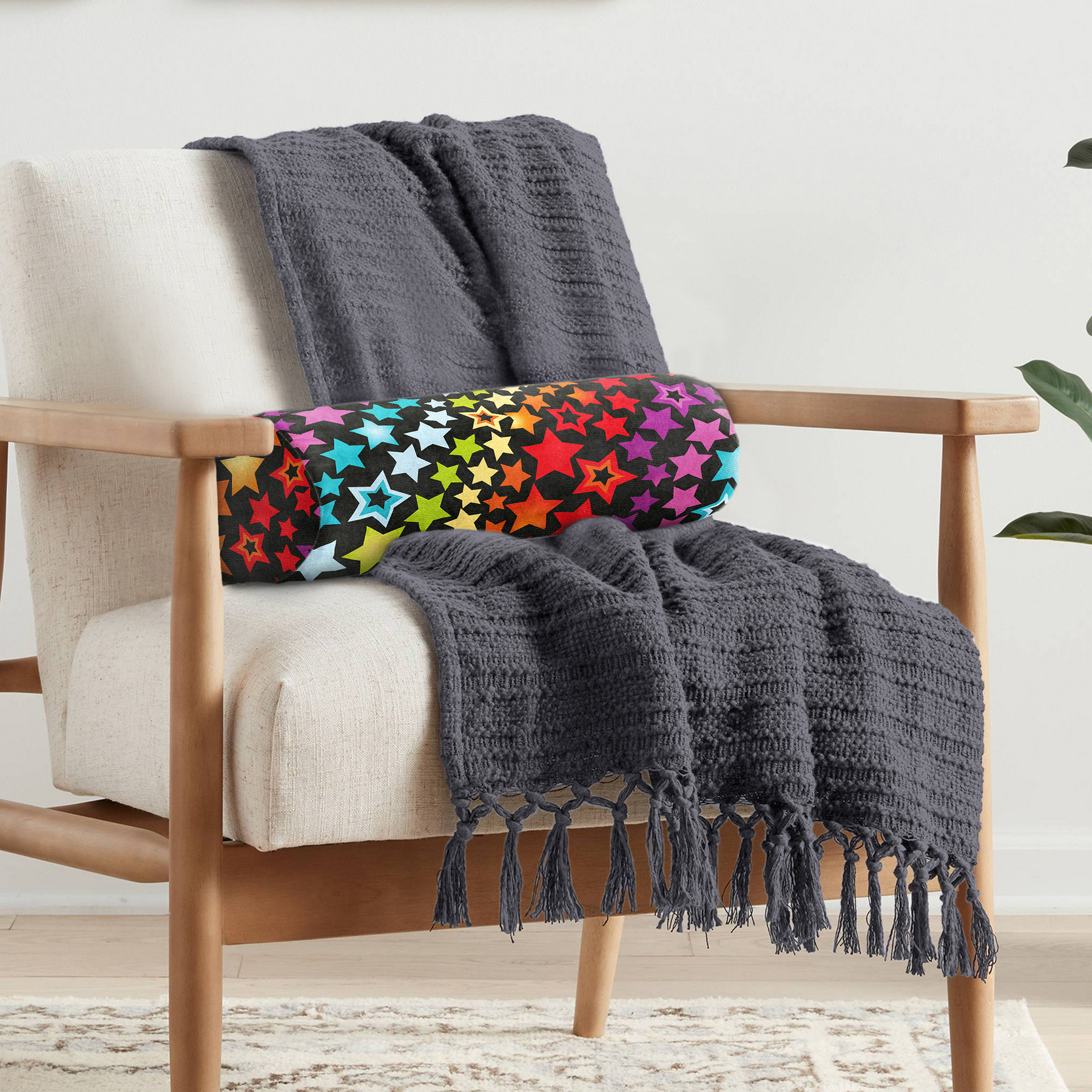 Renkli Yıldızlar Özel tasarım Dijital Baskılı İç Dolgulu – Fermuarlı Süet Silindir Yuvarlak Yastık Kırlent