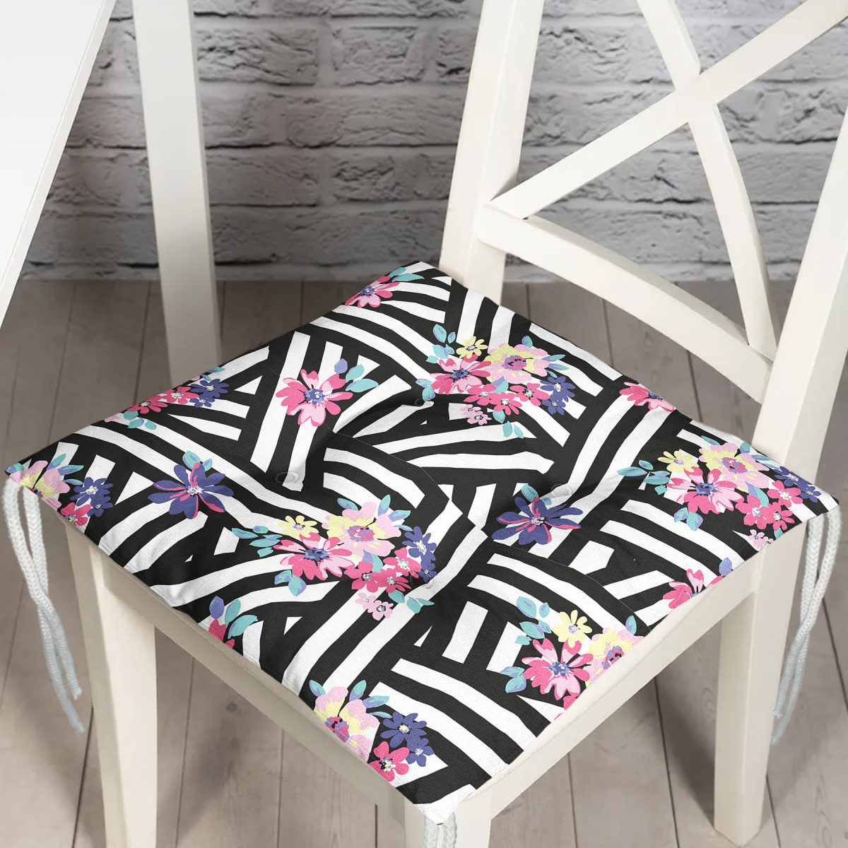 Renkli Zambak Desenli Modern Dijital Baskılı Pofuduk Sandalye Minderi