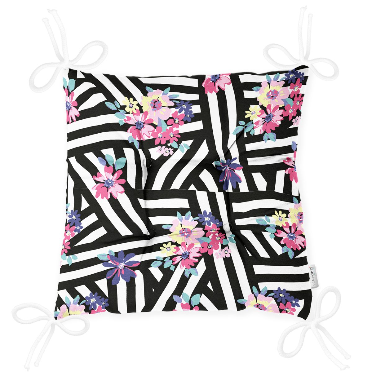 Renkli Zambak Desenli Modern Dijital Baskılı Pofuduk Sandalye Minderi Realhomes