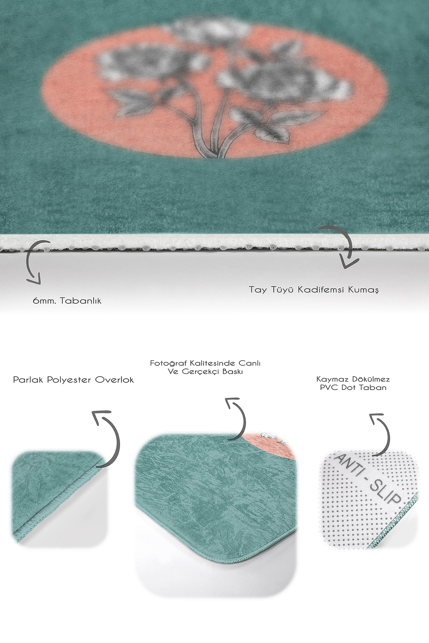 Tabanlık ve Dolgu: 6 mm Kaymaz dokuma tabanlıdır.