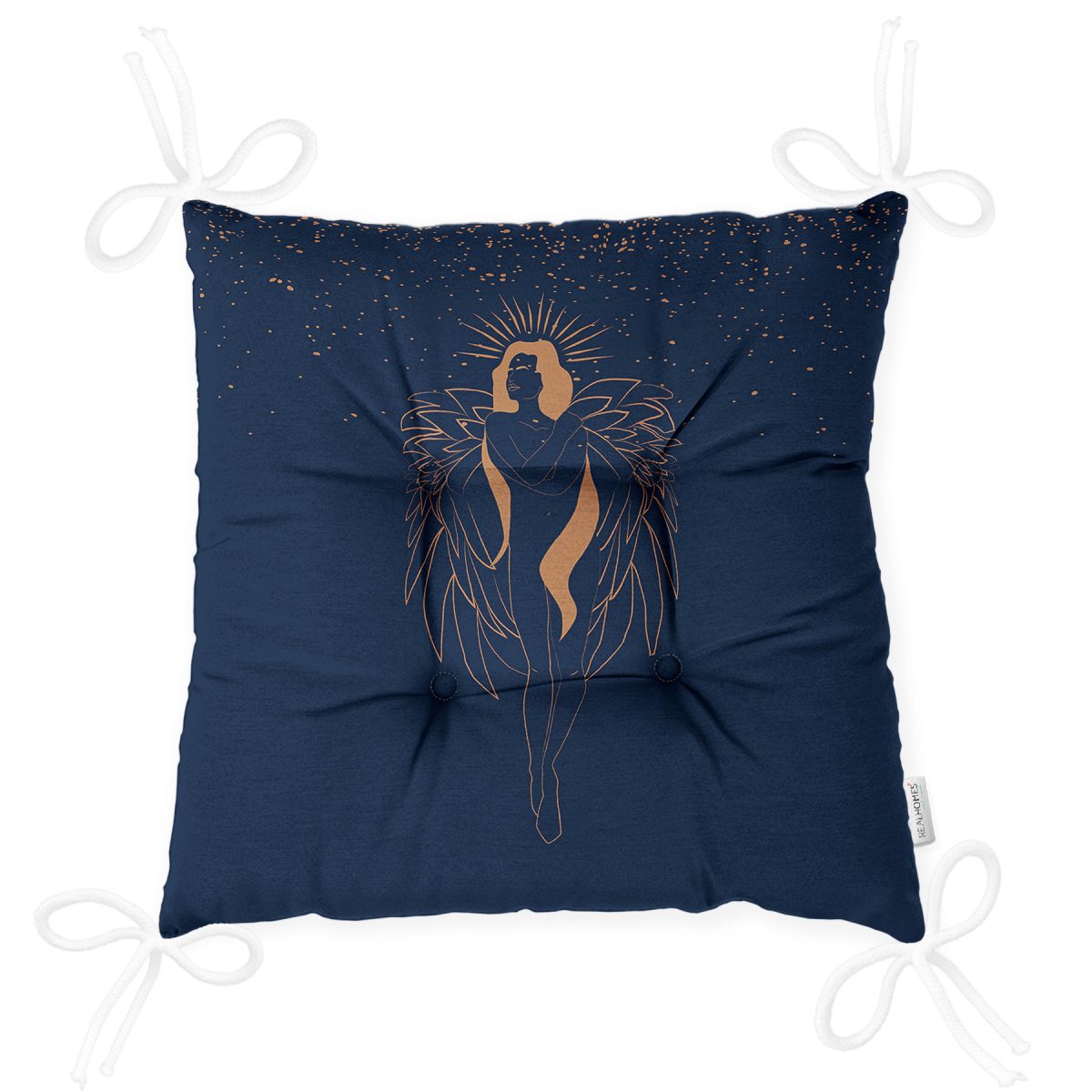 Renkli Zemin Üzerinde Bayan Silüeti Dijital Baskılı Modern Pofuduk Sandalye Minderi